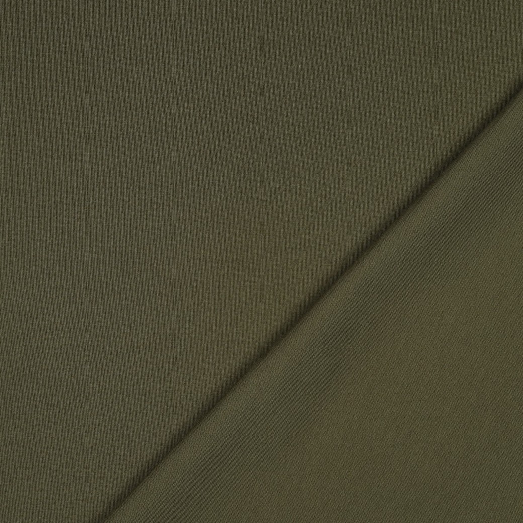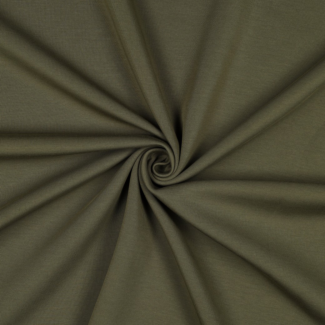 Entdecken Sie unseren Premium Baumwolle Interlock Jersey in edlem Armeegrün für Ihre kreativen Nähprojekte