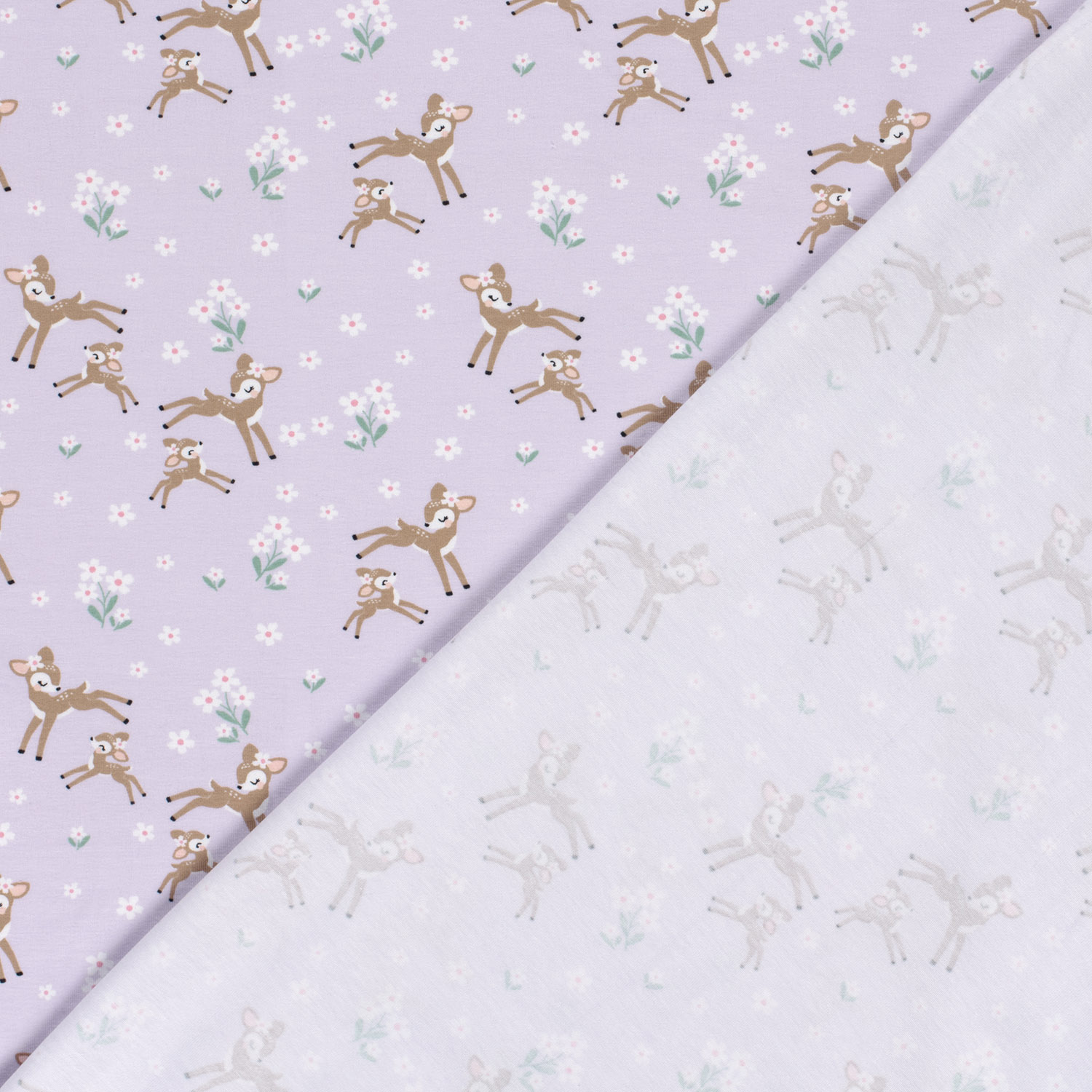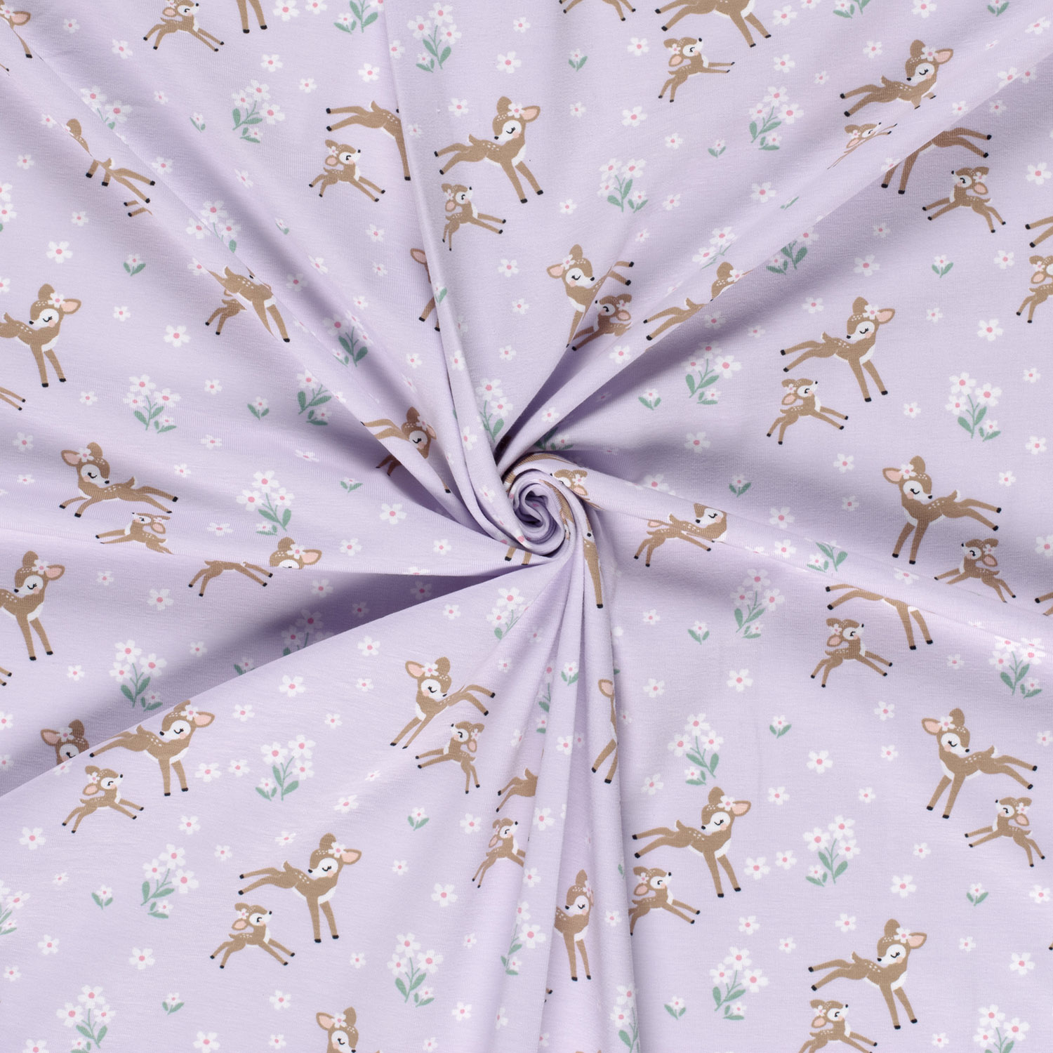 Produktinformationen "Baumwolle Jersey Bio Naturel Stoff bedruckt Rehe Lila"