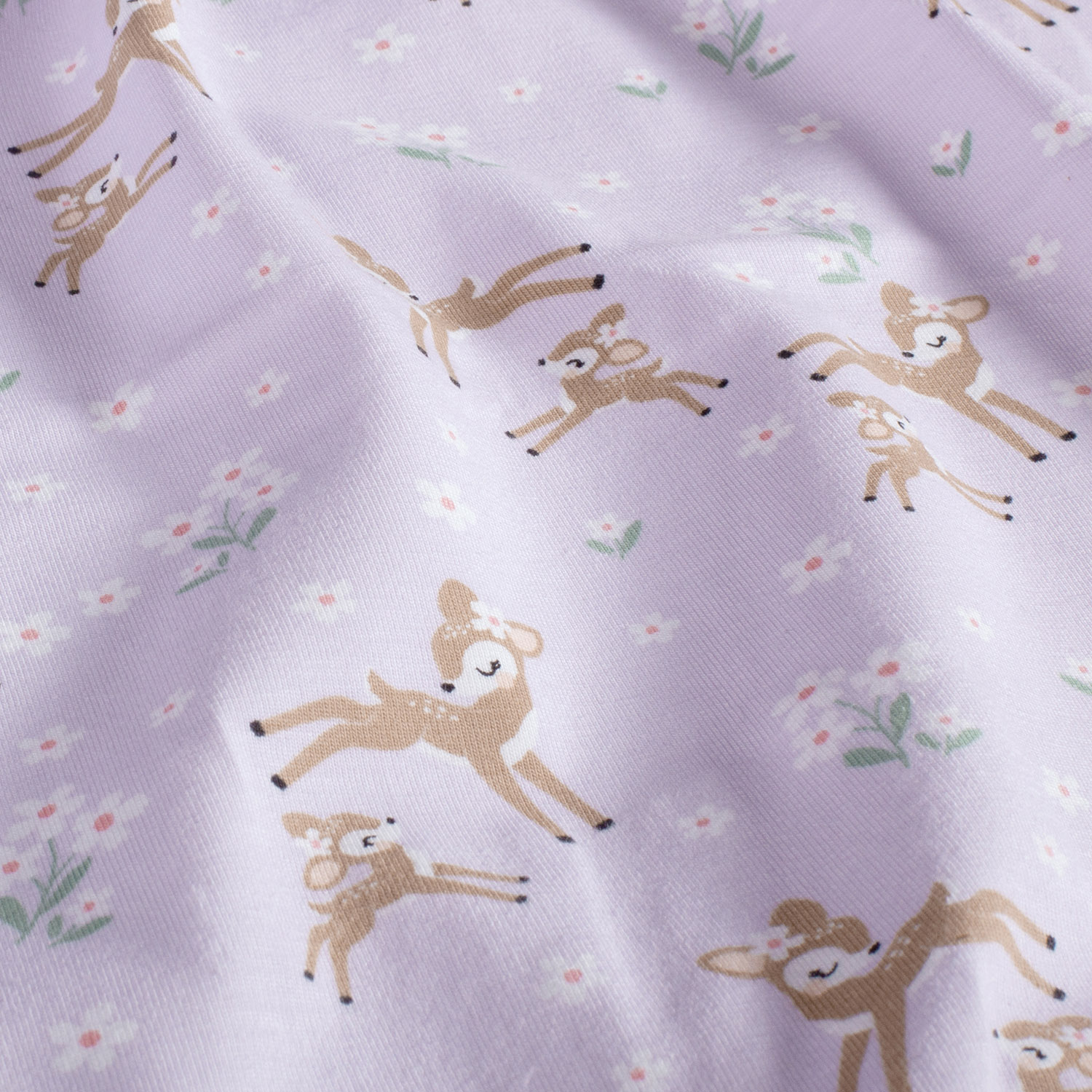 Baumwolle Jersey Bio Naturel Stoff bedruckt Rehe Lila | Baumwolljersey Meterware