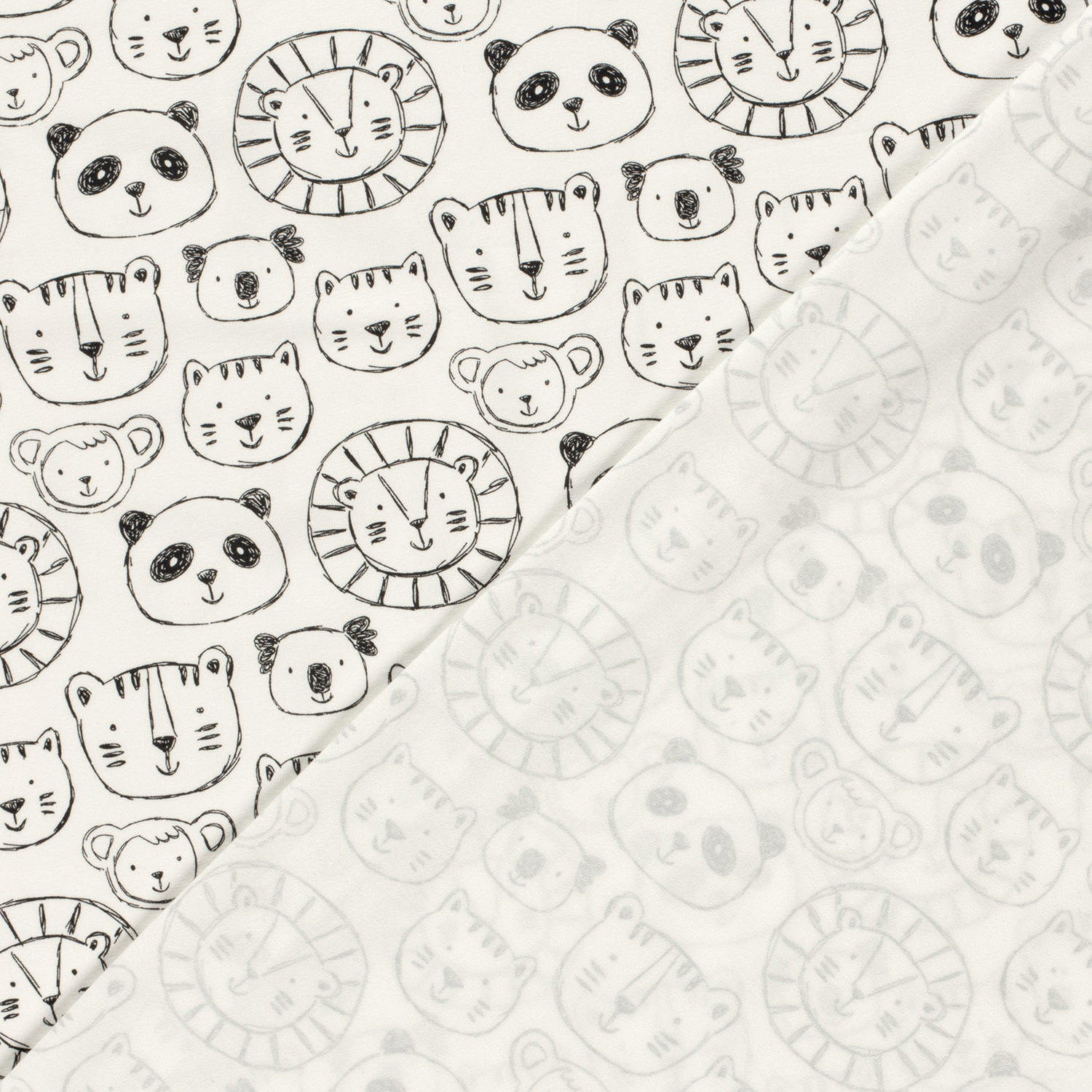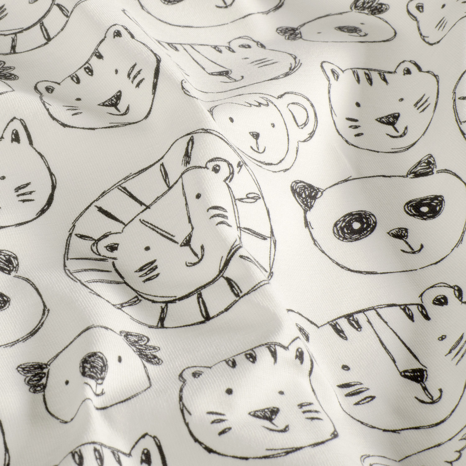 Baumwolle Jersey Bio Naturel Stoff bedruckt Safari Tiere Wollweiß