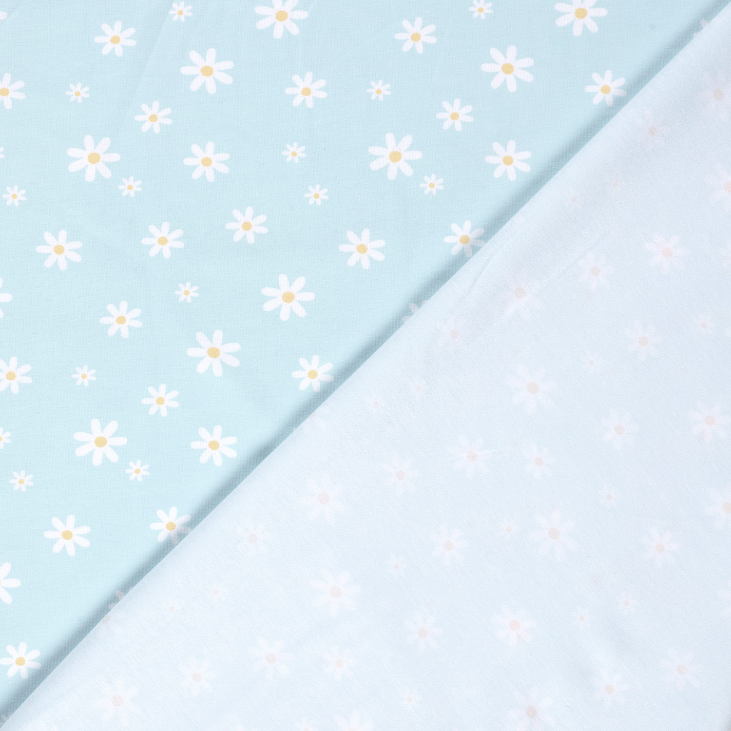 Baumwolle Jersey Stoff bedruckt Gänseblümchen Hellblau