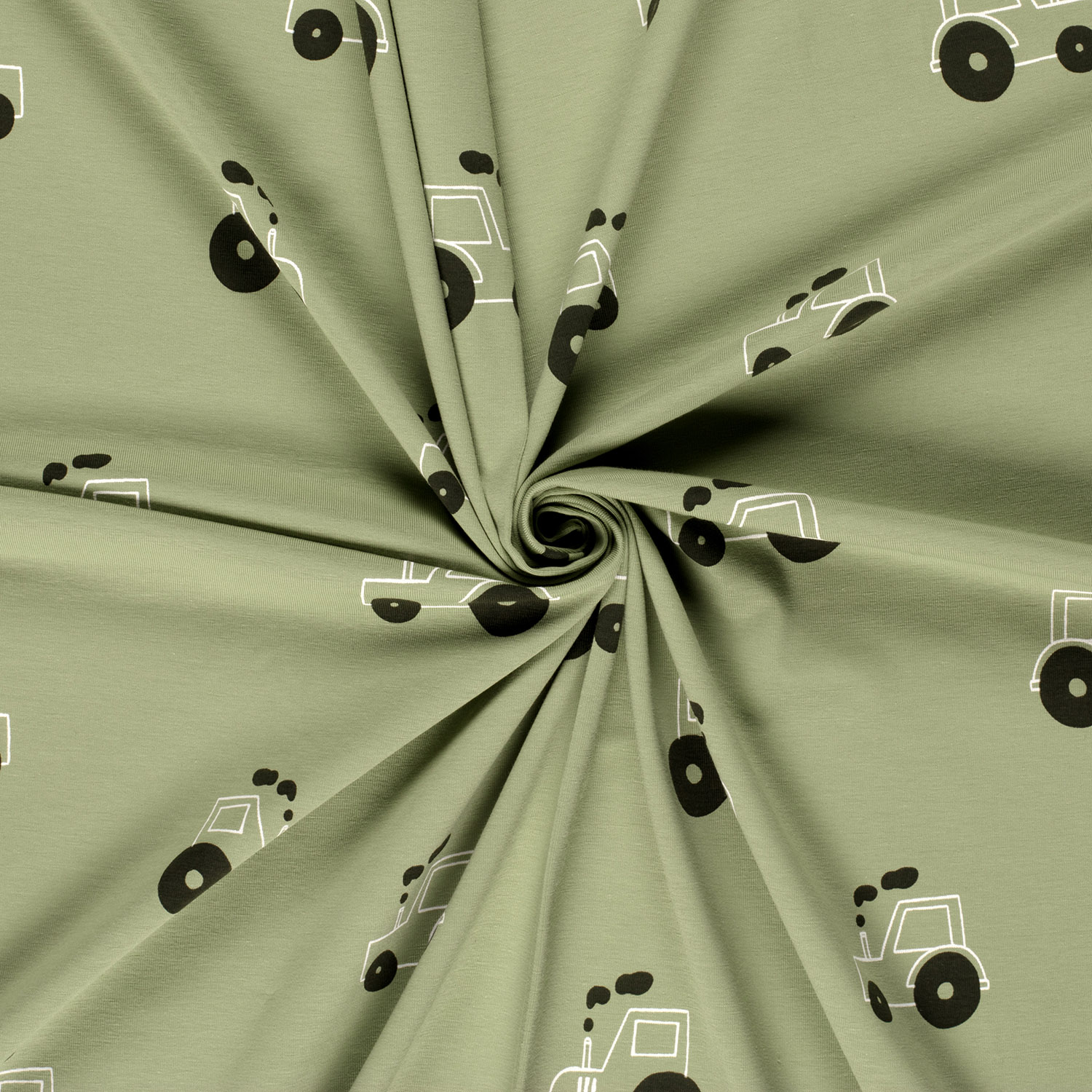 Der Baumwolle Jersey Stoff bedruckt Traktoren in der Farbe Olivgrün ist ein angenehm weicher und elastischer Baumwolljersey, der sich ideal für bequeme und alltagstaugliche Kleidung eignet. Die geschmeidige Qualität sorgt für hohen Tragekomfort und passt sich sanft dem Körper an, ohne einzuengen. Das detailreiche Traktoren-Motiv verleiht dem Stoff eine kindgerechte, robuste Optik und macht ihn zu einer beliebten Wahl für kleine Fahrzeug- und Bauernhof-Fans.