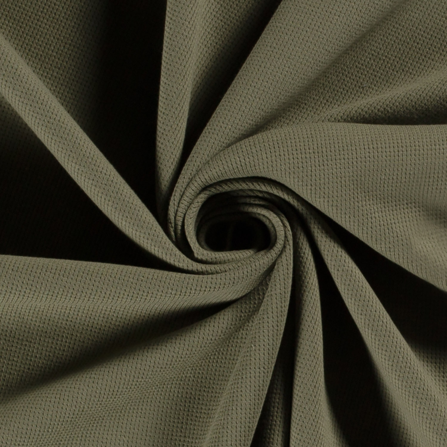 Entdecken Sie den luxuriösen HEAVY KNITTED WAFFLE Baumwolljersey in edlem Tannengrün – Ihr neuer Lieblingsstoff für kreative Nähprojekte