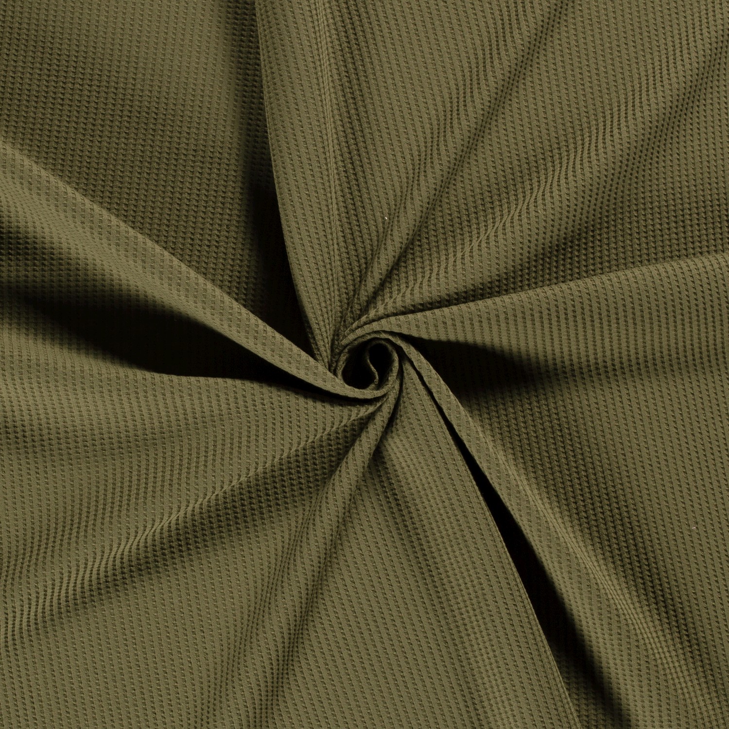 Entdecken Sie unseren Knitted Waffle Baumwolle Jersey in edlem Khaki-Grün – Perfekt für Ihre gemütlichen Nähprojekte