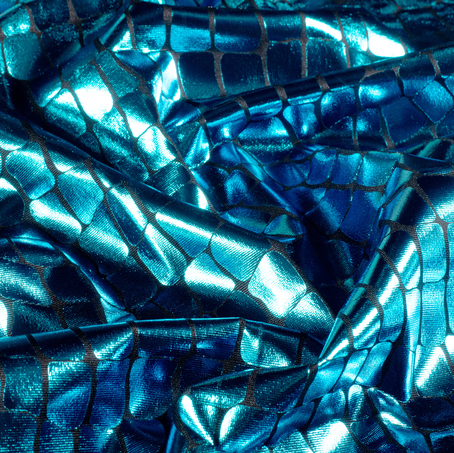 Verwandlung Pur: Entdecken Sie Unseren Faszinierenden STRETCH FOIL ALLIGATOR Lamé in Schillerndem Aqua