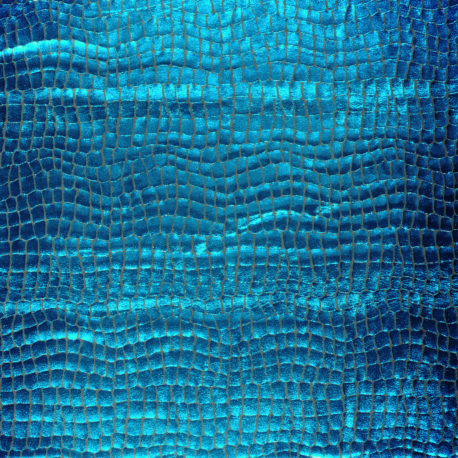 Die Besonderheit dieses außergewöhnlichen Folienstoffes liegt in seiner einzigartigen, dreidimensionalen Alligator-Struktur. Jede einzelne Schuppe scheint zum Leben zu erwachen, während die metallisch glänzende Folienbeschichtung ein faszinierendes Lichtspiel erzeugt. Das subtile, aber dennoch markante Reptilienmuster verleiht diesem glänzenden Stoff eine unverkennbare Tiefe und Textur. Der Farbton Aqua erinnert an geheimnisvolle Tiefen des Ozeans, an tropische Lagunen oder an den schimmernden Panzer eines exotischen Reptils. Dieser exotische Stoff ist nicht einfach nur ein Lamé, er ist ein Statement – ein Ausdruck von kühner Kreativität und unübersehbarem Stil, der Ihre Projekte von der Masse abheben wird.