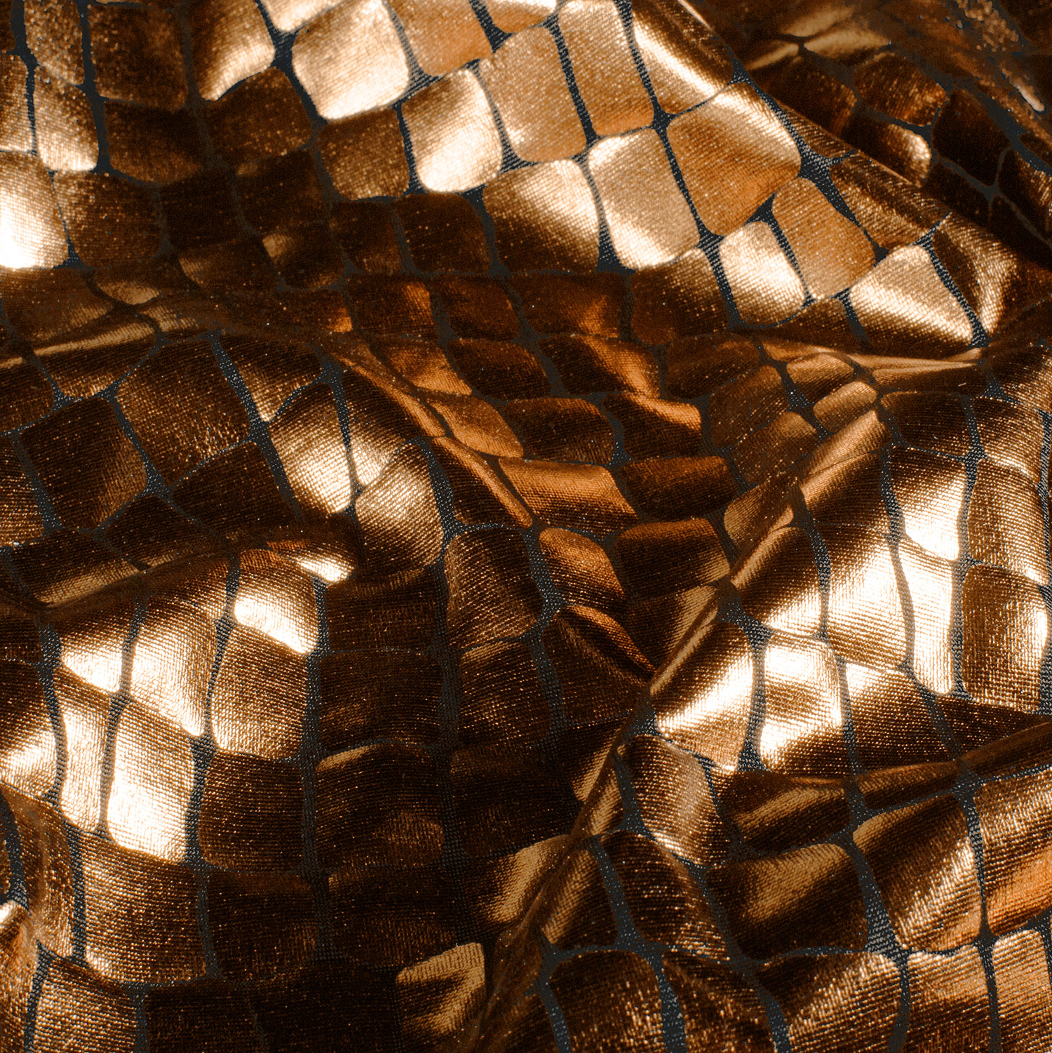 Verwandeln Sie Ihre Visionen mit unserem exklusiven STRETCH FOIL ALLIGATOR Lamé Stoff in Bronze