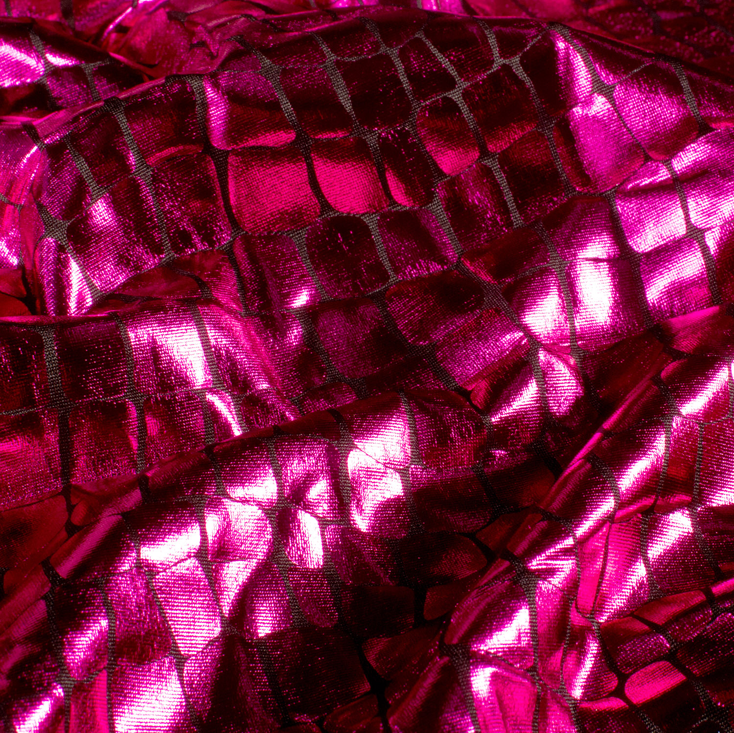 Entdecken Sie den extravaganten Stretch Foil Alligator Lamé in Fuchsia – Ihr Glanzstoff für einzigartige Kostüme & Outfits bei Stoffe Schulz