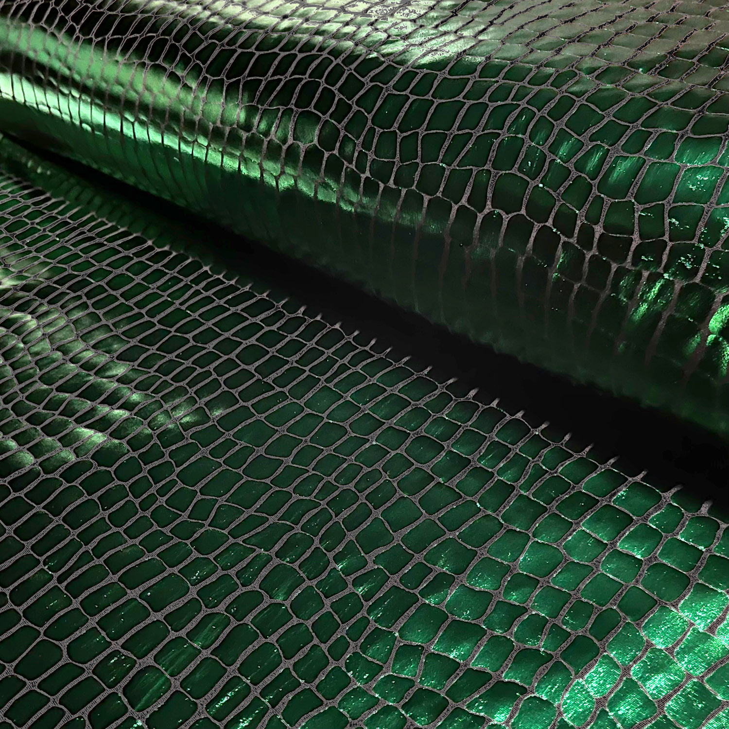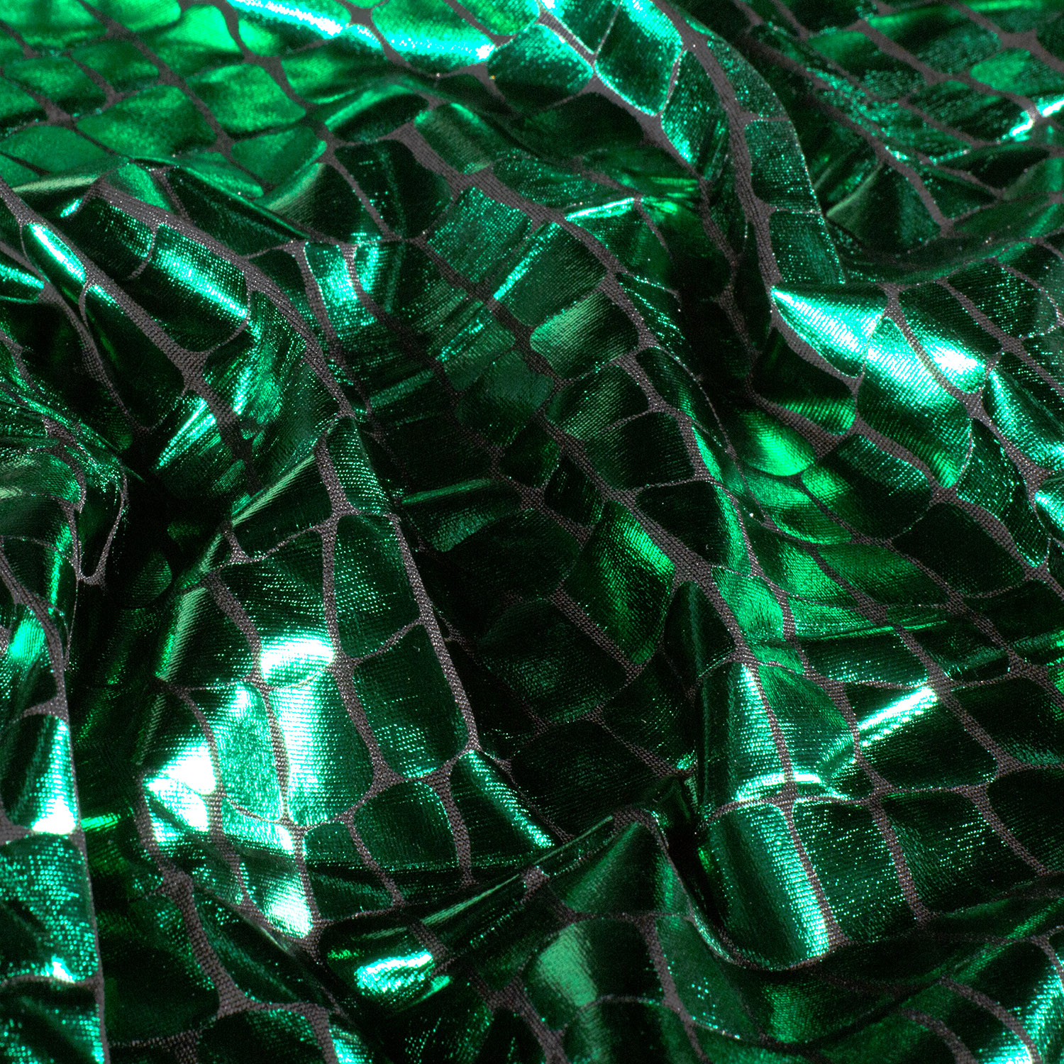 Verführerischer Glanz: Stretch Foil Alligator Lamé Stoff in Tiefem Grün – Produkt-ID: 20857/025