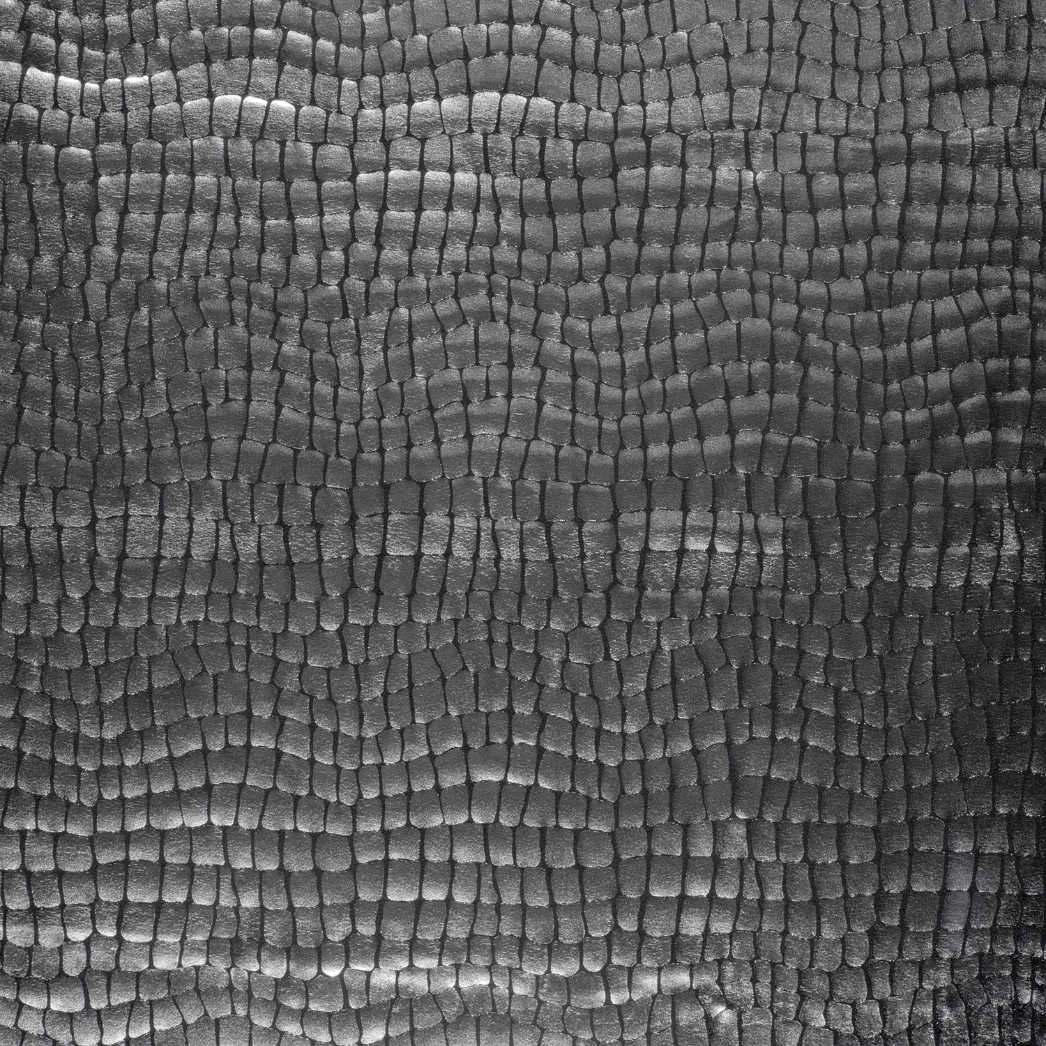 Der Name ist Programm: Unser STRETCH FOIL ALLIGATOR Stoff besticht durch eine faszinierende Oberflächenprägung, die an die einzigartige Textur von Alligatorenhaut erinnert. Diese spezielle Folierung verleiht dem silbernen Lamé eine unvergleichliche Tiefe und ein dreidimensionales Schillern, das weit über einen einfachen Glanzstoff hinausgeht. Jeder Blickwinkel offenbart neue Facetten und lässt Ihr Werk lebendig wirken. Dank der Lamé-Qualität ist Ihnen ein luxuriöser Glanz garantiert, der in jedem Licht spektakulär aussieht und Ihr Projekt in den Mittelpunkt rückt.