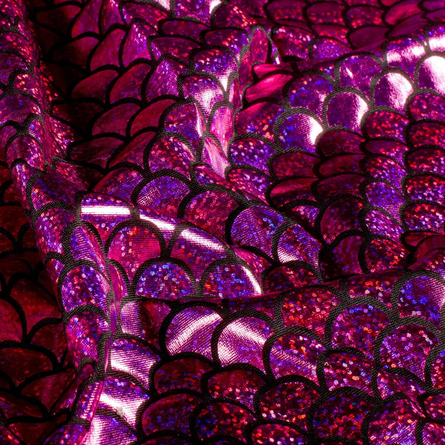 Tauchen Sie ein in eine Welt voller Glanz: STRETCH FOIL MERMAID Stoff in Fuchsia