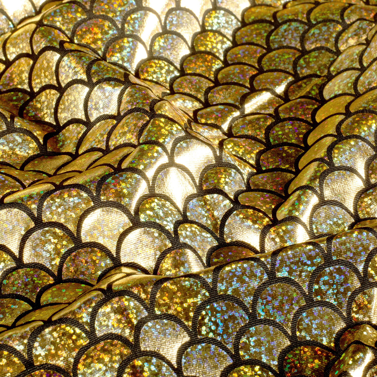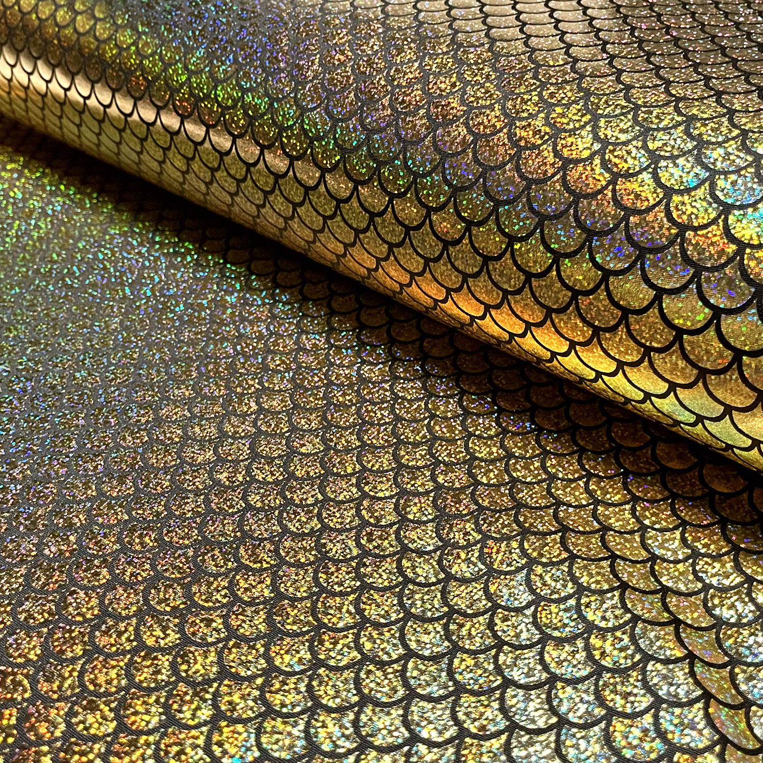 Entdecken Sie den Schillernden STRETCH FOIL MERMAID Lamé Stoff in Gold – Perfekt für Ihre Glamourösen Projekte bei Stoffe Schulz