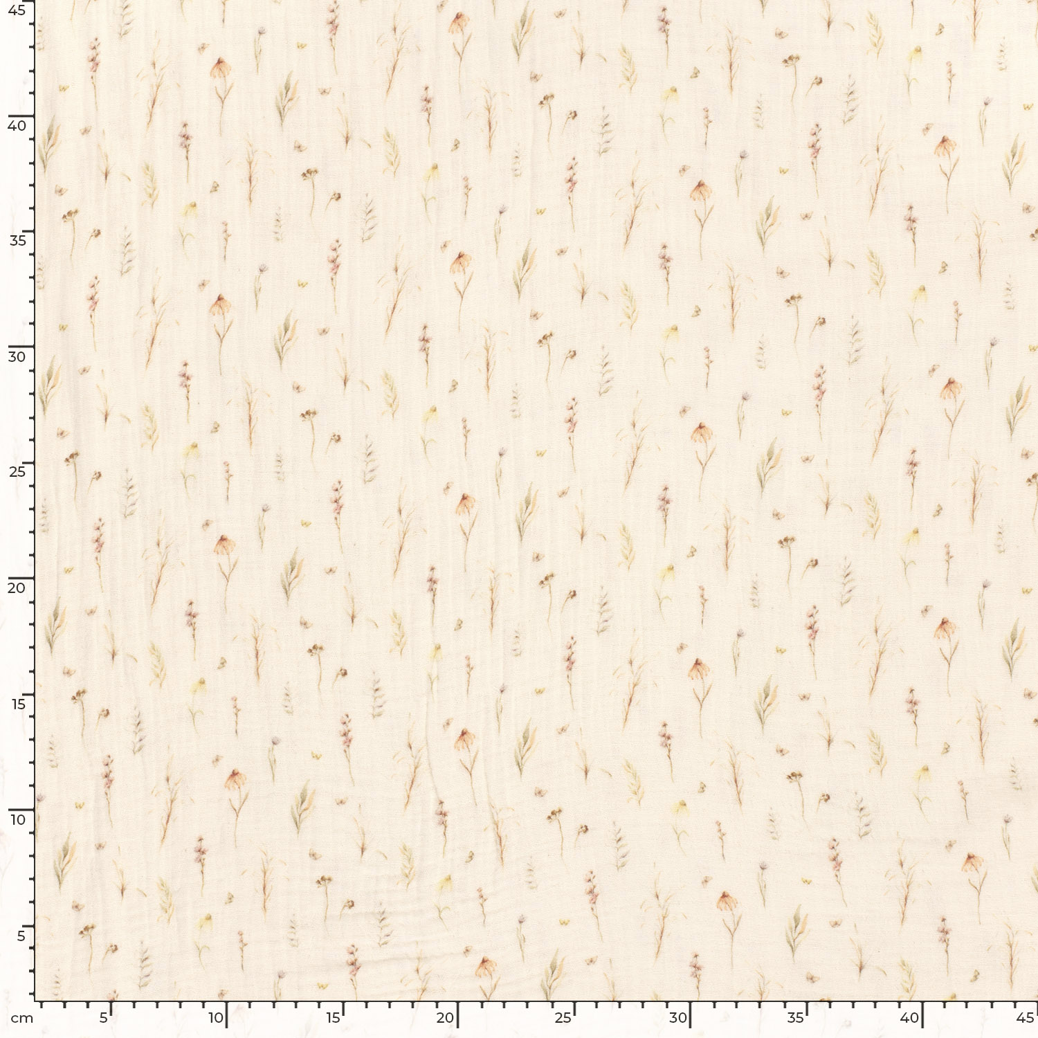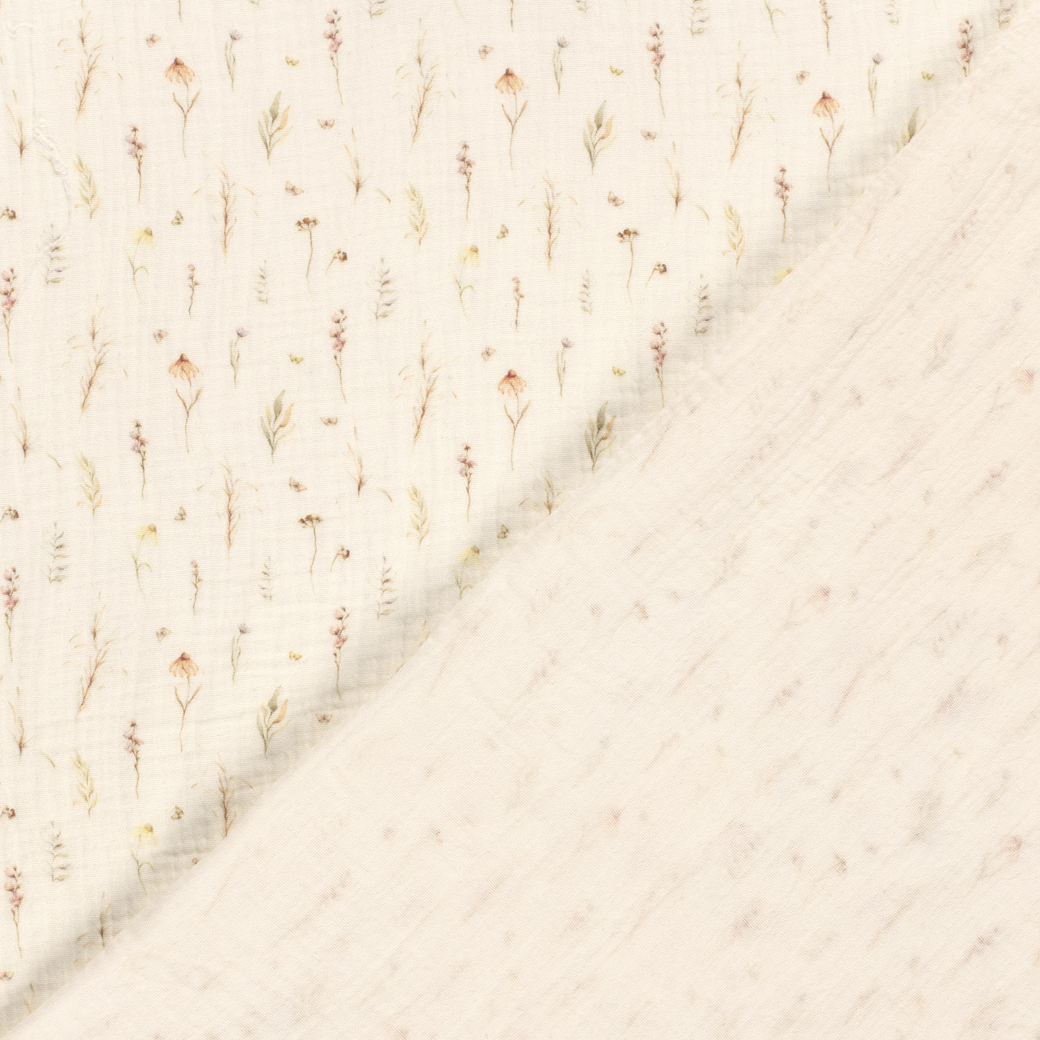 Musselin Stoff bedruckt Blütenmix – wollweiß | Baumwollstoff Double Gauze