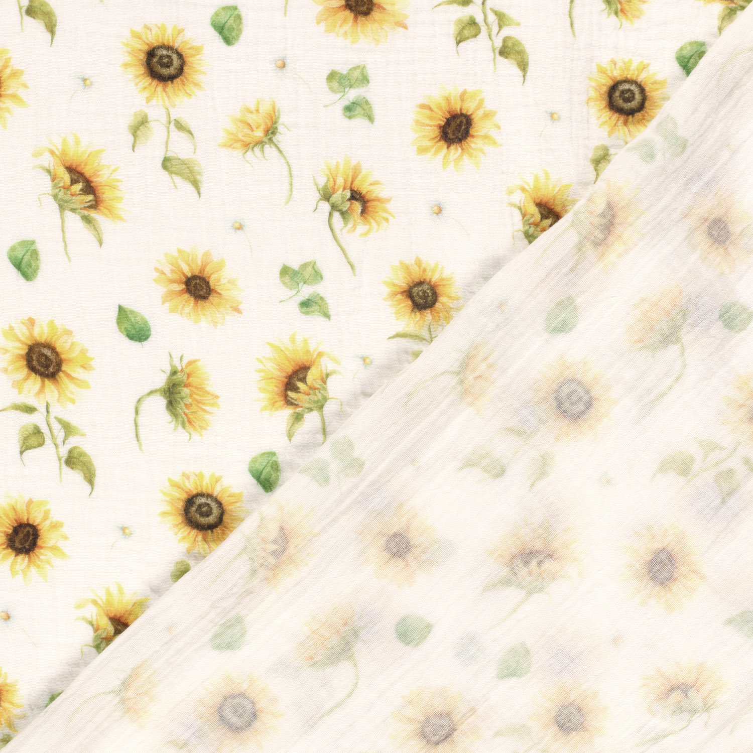 Musselin Stoff bedruckt mit Sonnenblumen – wollweiß