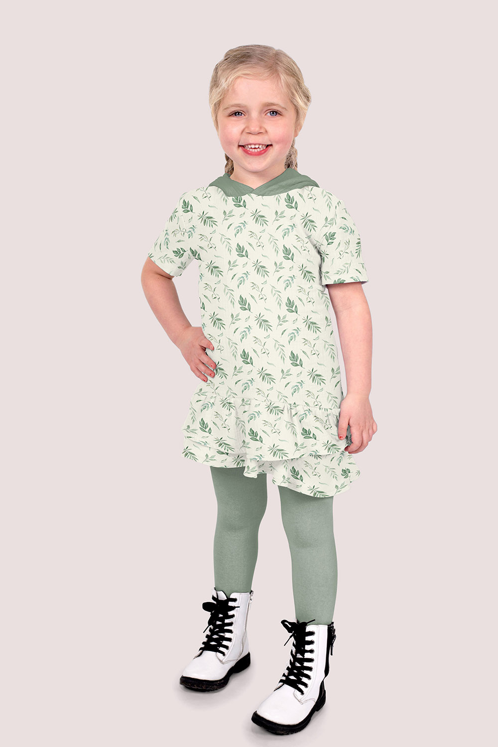 Musselin Stoff bedruckt mit grünen Blättern – wollweiß Kopie