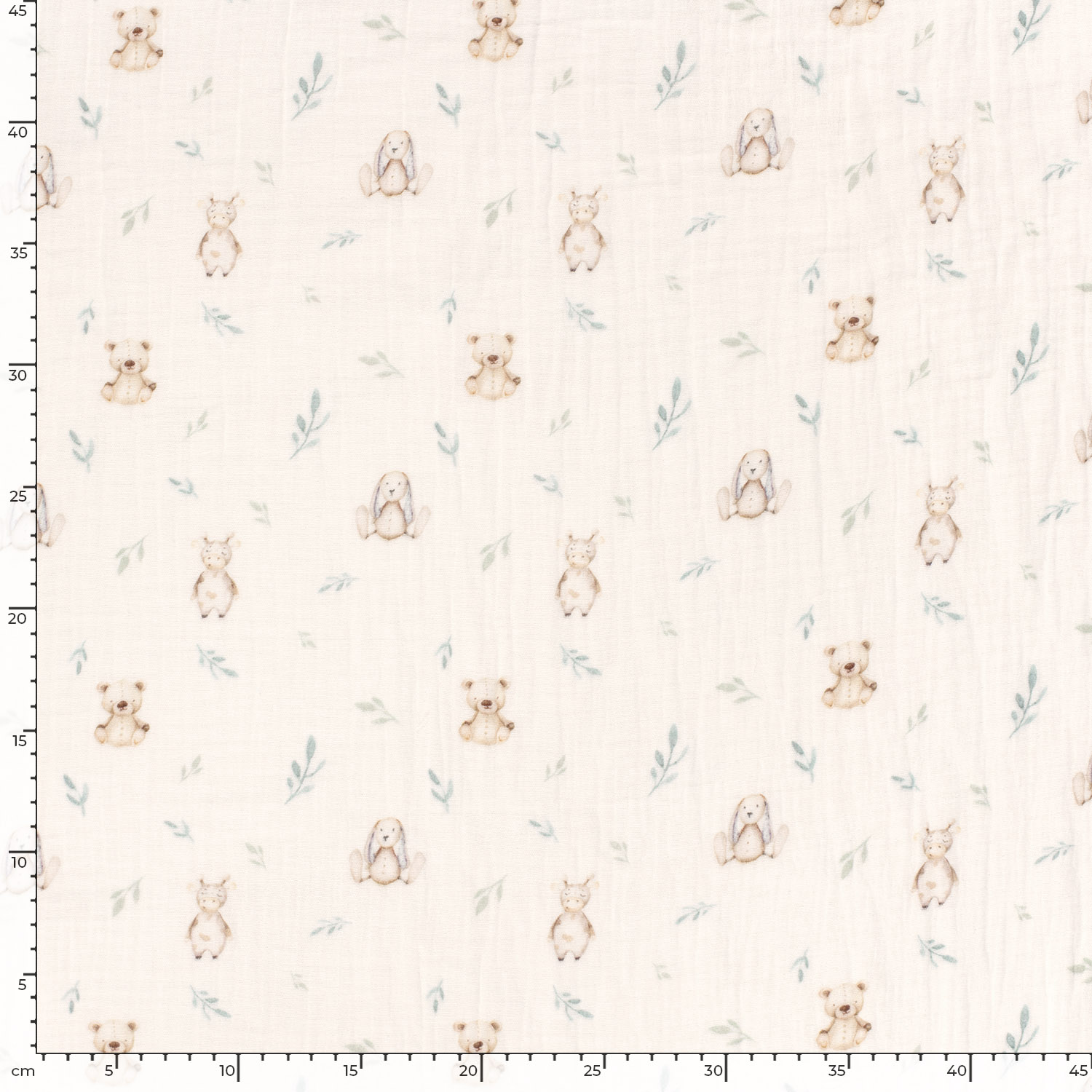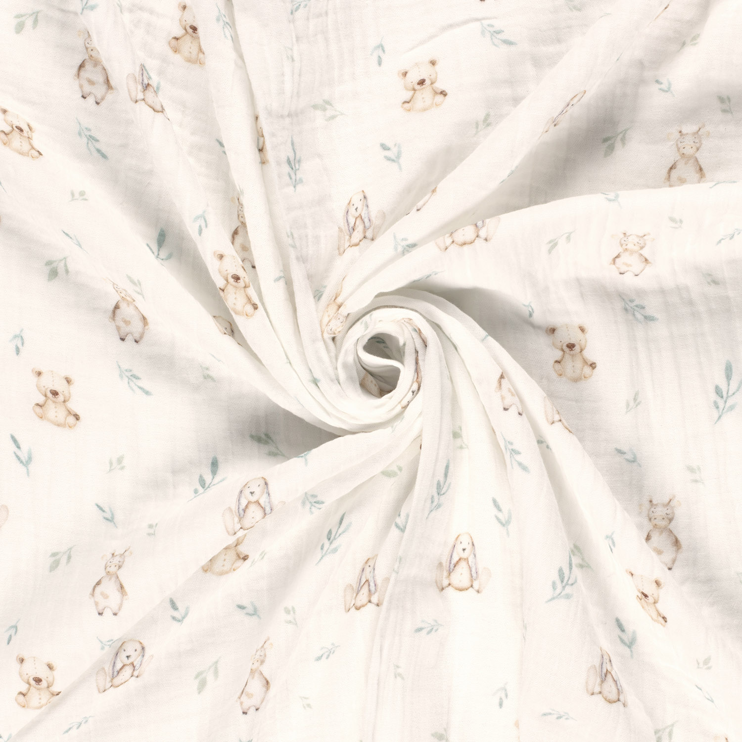Musselin Stoff digital bedruckt Bären – wollweiß | Baumwollstoff Double Gauze