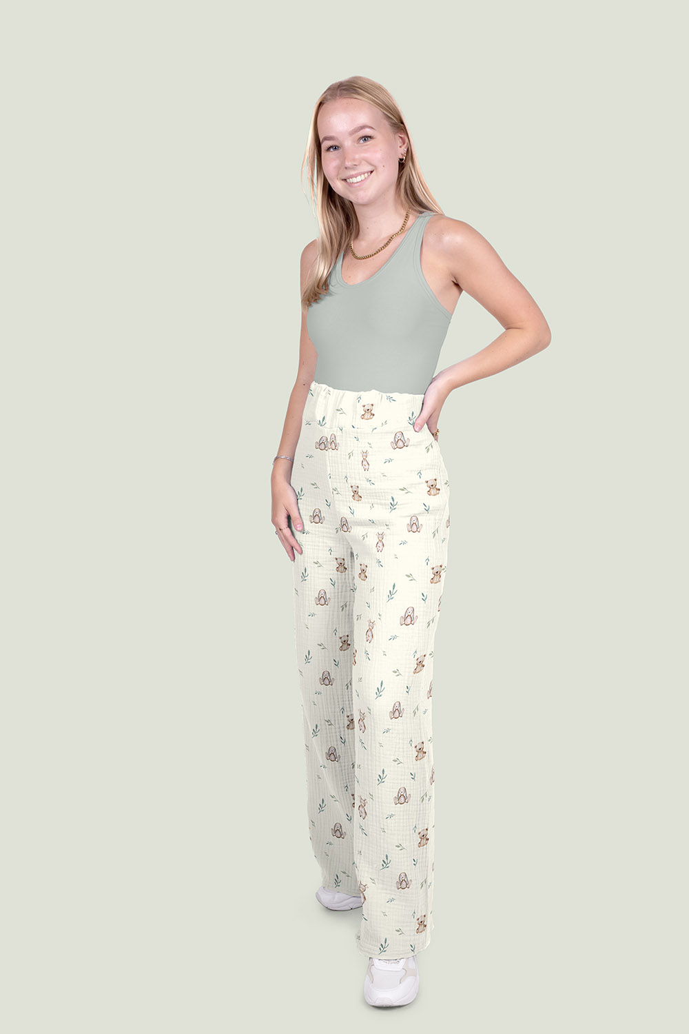 Dieser hochwertige Musselin Stoff (Double Gauze) ist digital bedruckt und zeigt ein liebevolles Bären-Motiv auf einem eleganten wollweißen Hintergrund. Der feine Baumwollstoff überzeugt durch seine besonders weiche Haptik, hohe Qualität und vielseitige Einsatzmöglichkeiten. Musselin besteht aus zwei locker miteinander verbundenen Gewebelagen und ist dadurch leicht, atmungsaktiv und angenehm zu tragen.
