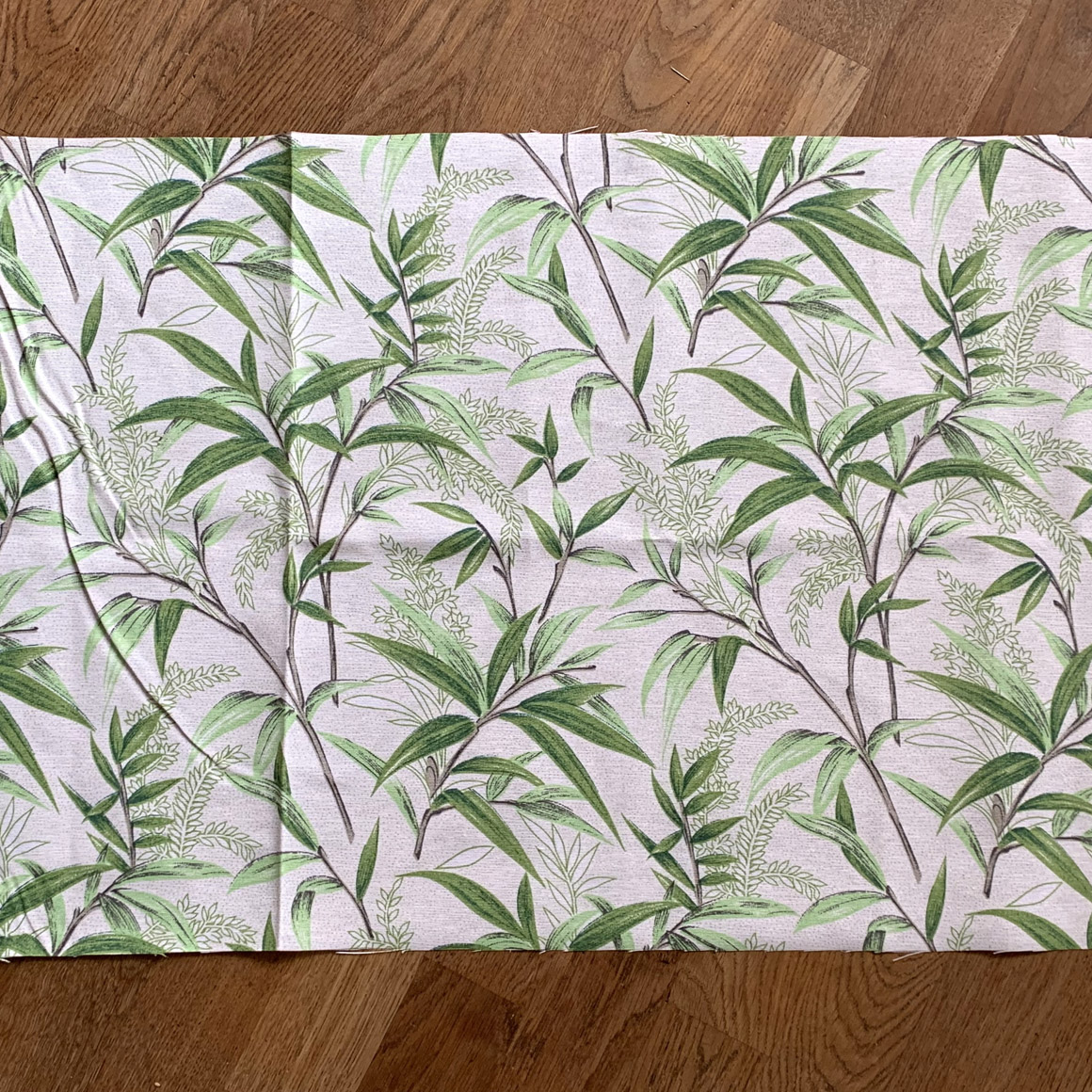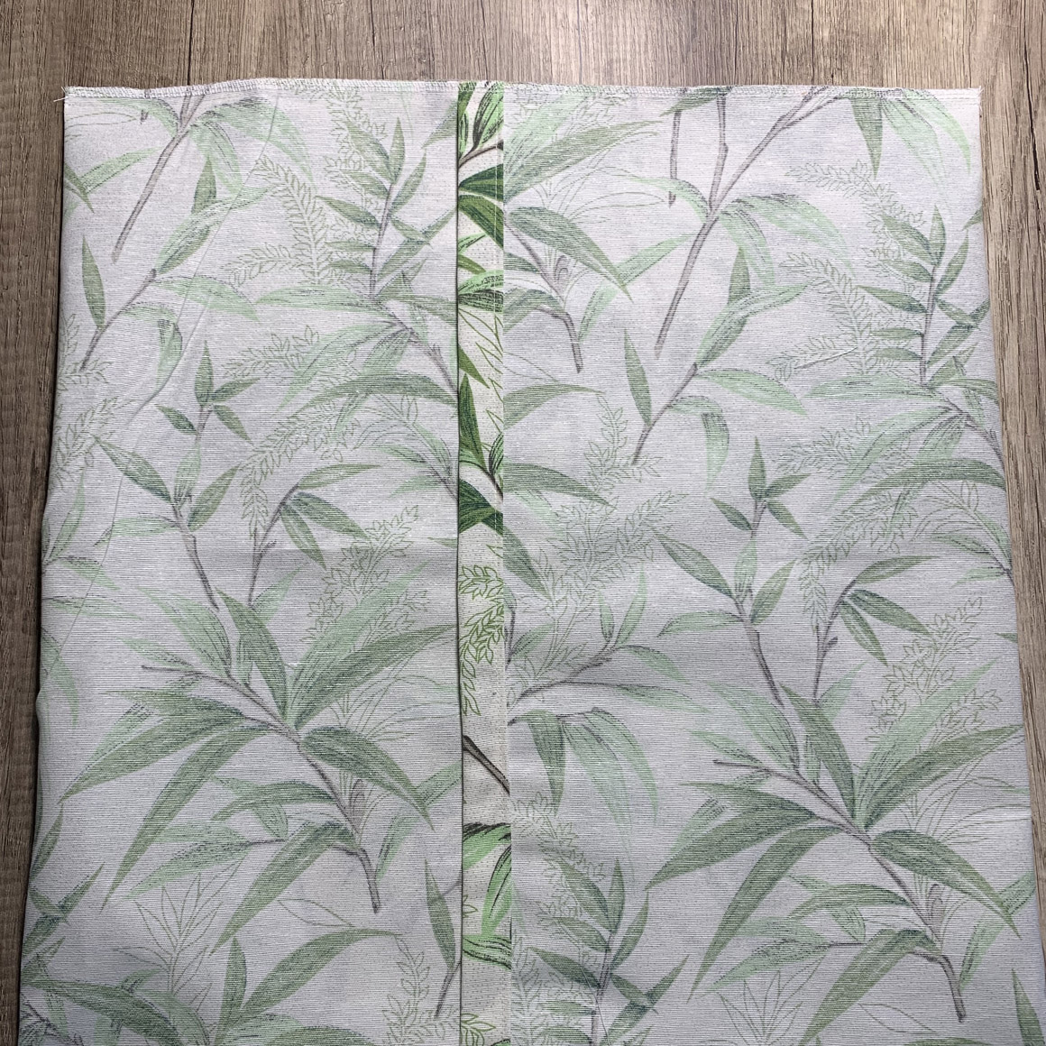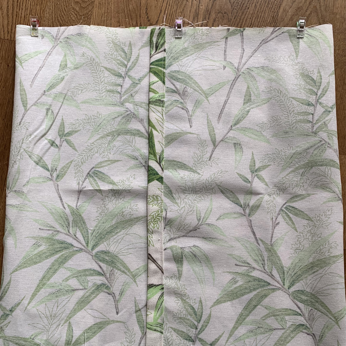 Falte nun die Seiten so übereinander, dass die kurzen Seiten sich überlappen. Es entsteht nun deine fertige Breite von 40cm. Fixiere die Seiten mit Clips oder Stecknadeln.
