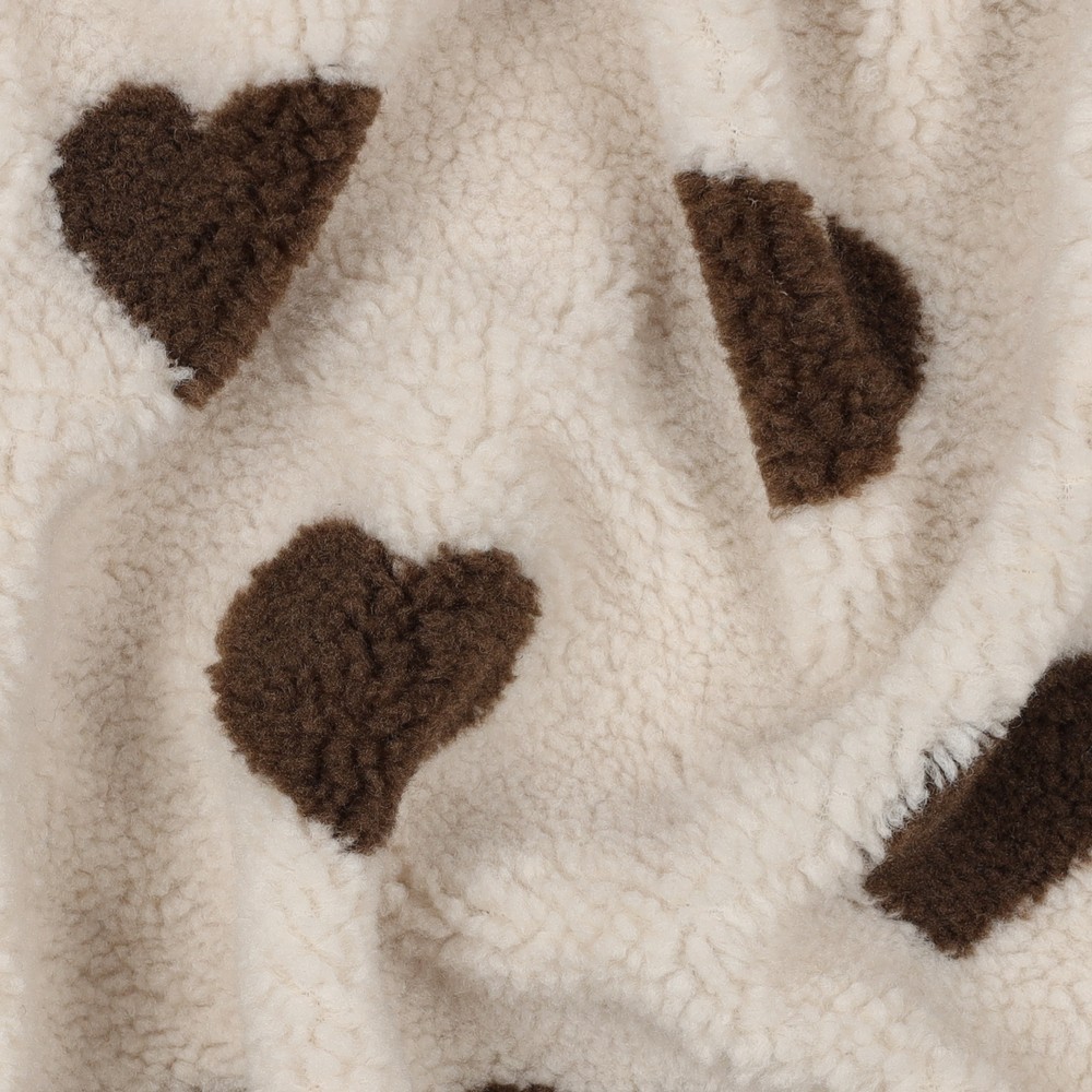 Die Einsatzmöglichkeiten dieses Teddy Jacquard Stoffes sind nahezu grenzenlos. Kreieren Sie unwiderstehlich weiche Babydecken, die zum Schmusen einladen, oder nähen Sie gemütliche Kinderkleidung wie Pullover, Jacken, Westen oder sogar Schlafsäcke, die Ihre Kleinen warmhalten und bezaubern. Auch für Krabbeldecken oder Spielzeug ist dieser Kinderstoff hervorragend geeignet. Für Ihr Zuhause lässt sich dieser braune Herzstoff hervorragend zu dekorativen Kissenbezügen, kuscheligen Sofaüberwürfen oder stilvollen Plaids verarbeiten, die jedem Raum eine warme und einladende Atmosphäre verleihen. Selbst für einzigartige Accessoires wie Taschen oder Stofftiere ist dieser Teddy Jacquard eine wunderbare Wahl, die jedem Geschenk eine persönliche Note verleiht.