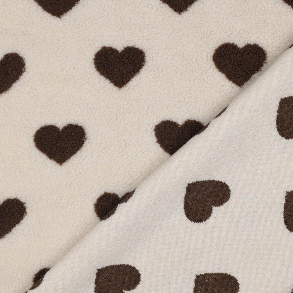 TEDDY JACQUARD HERZEN - BRAUN: Ihr Kuscheliger Traumstoff für Einzigartige Projekte bei Stoffe Schulz