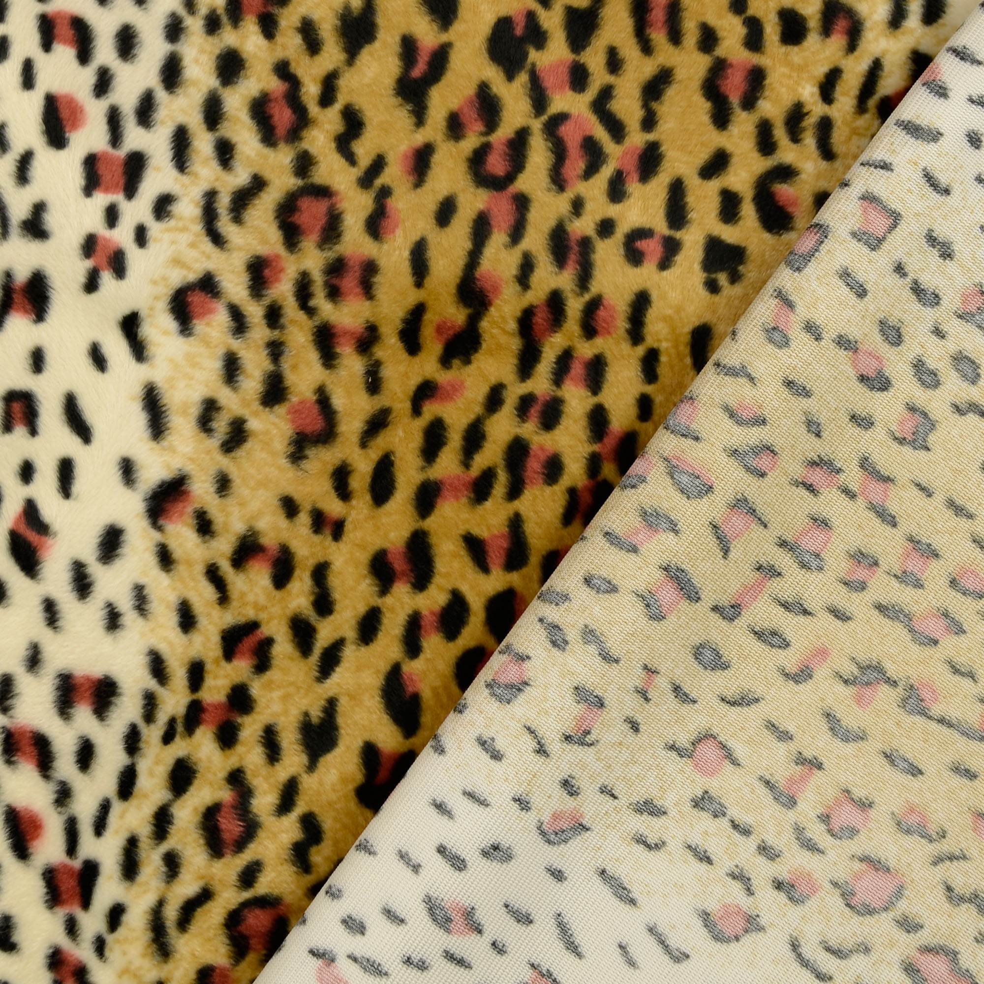 Exklusives Tierfellimitat mit kurzem Flor im Leoparden-Look. Ideal für ausgefallene Modekreationen, Karnevalskostüme und Wohndekorationen wie beispielsweise Kissen und Decken!