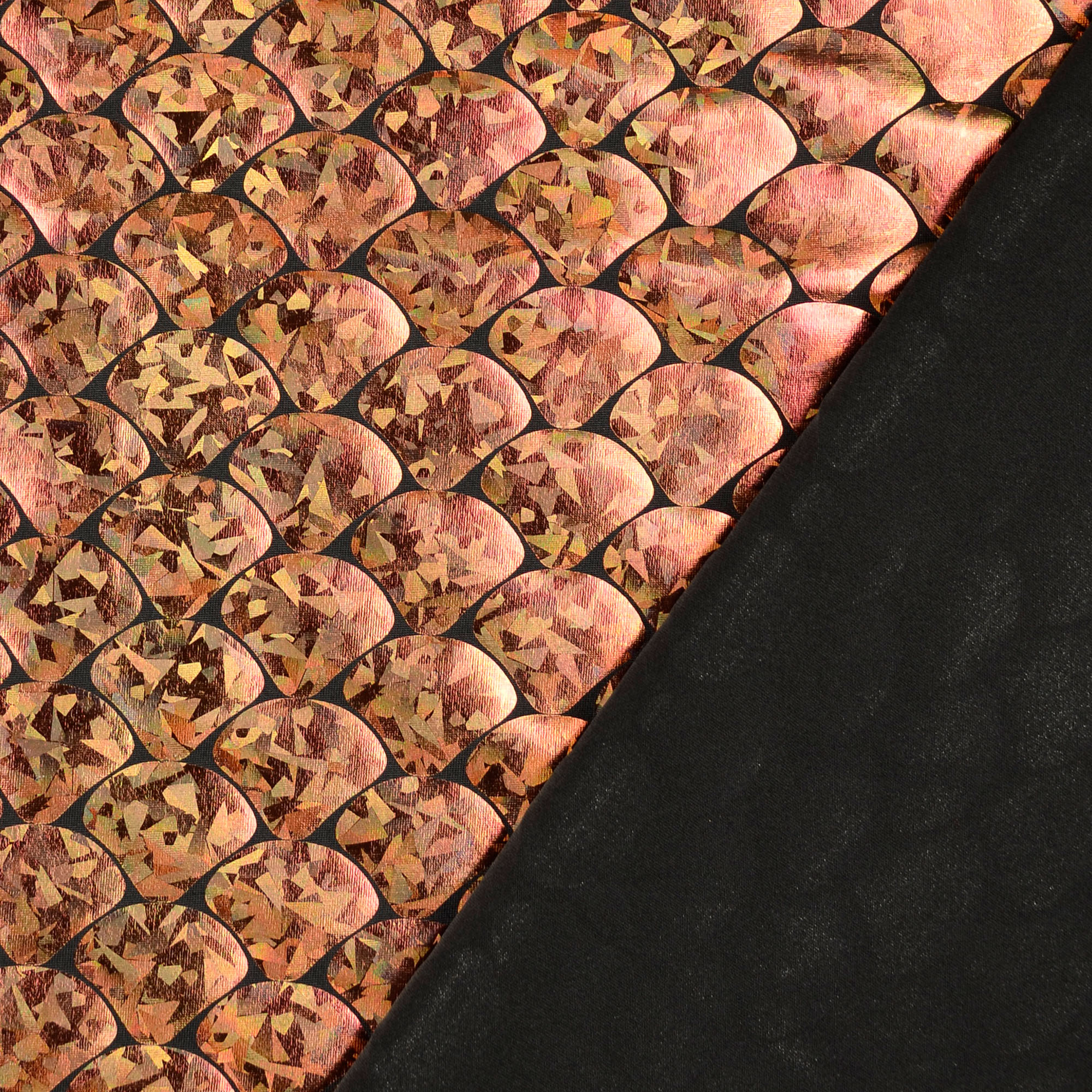 Dieser Stoff bringt Sie zum Scheinen!Weichfallender elastischer Folienjersey mit einem eindrucksvollen Hologramm-Effekt.