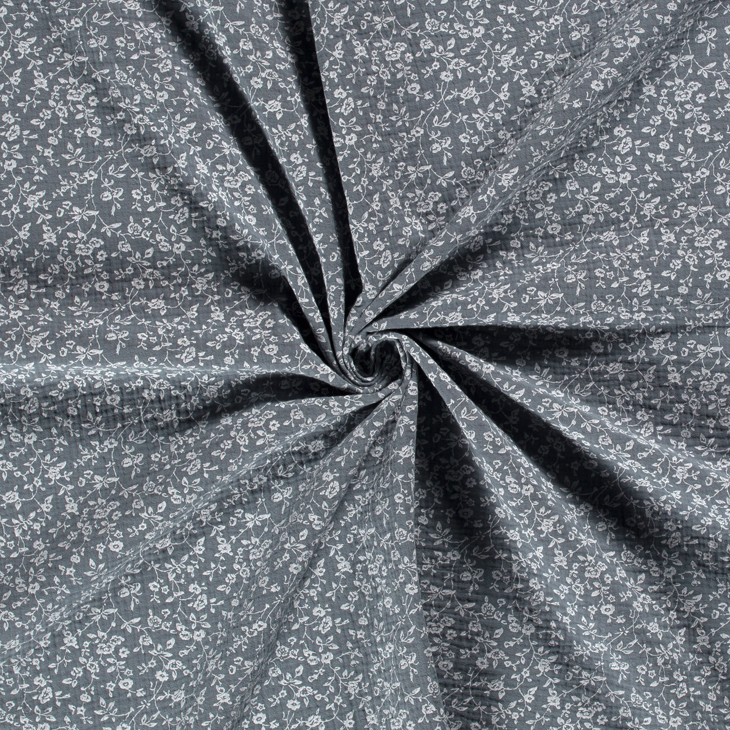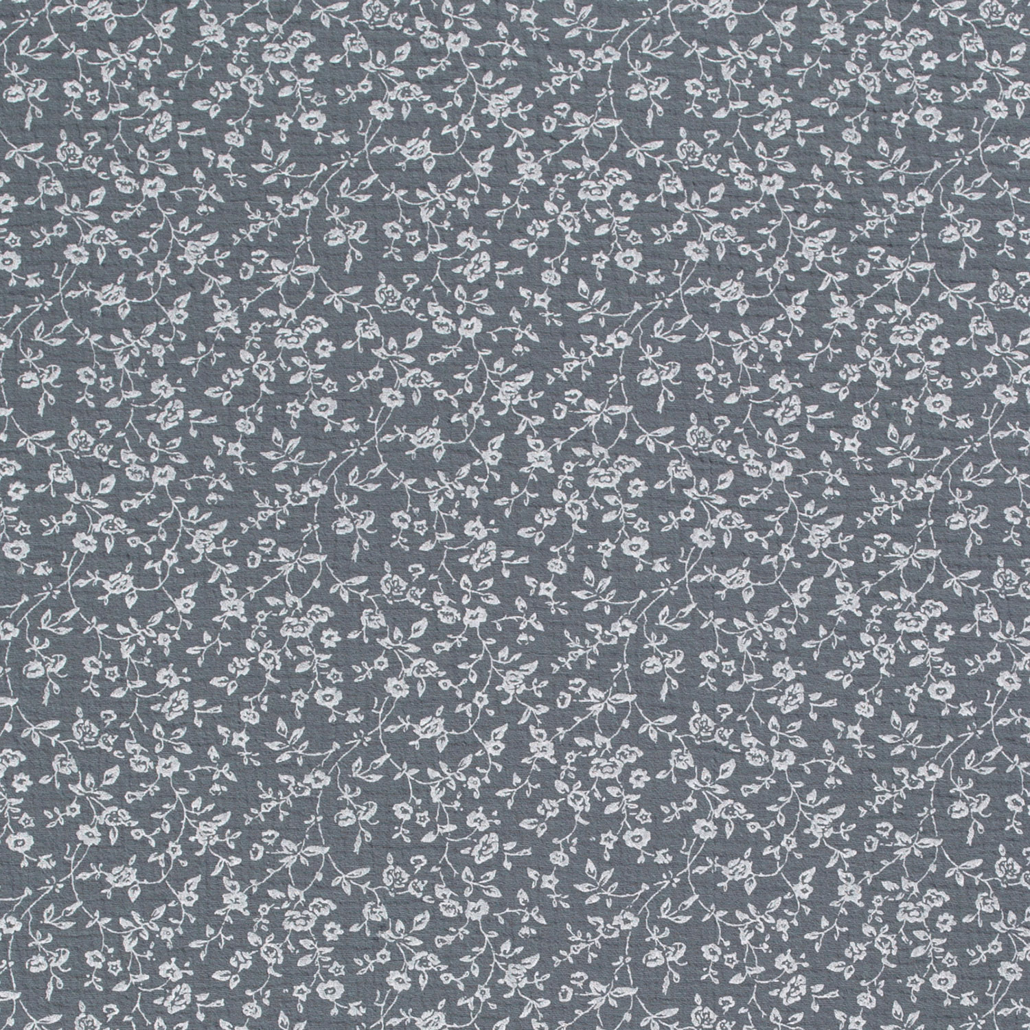 Produktinformationen "Musselin Stoff Bedruckt Blumen, stahlblau"