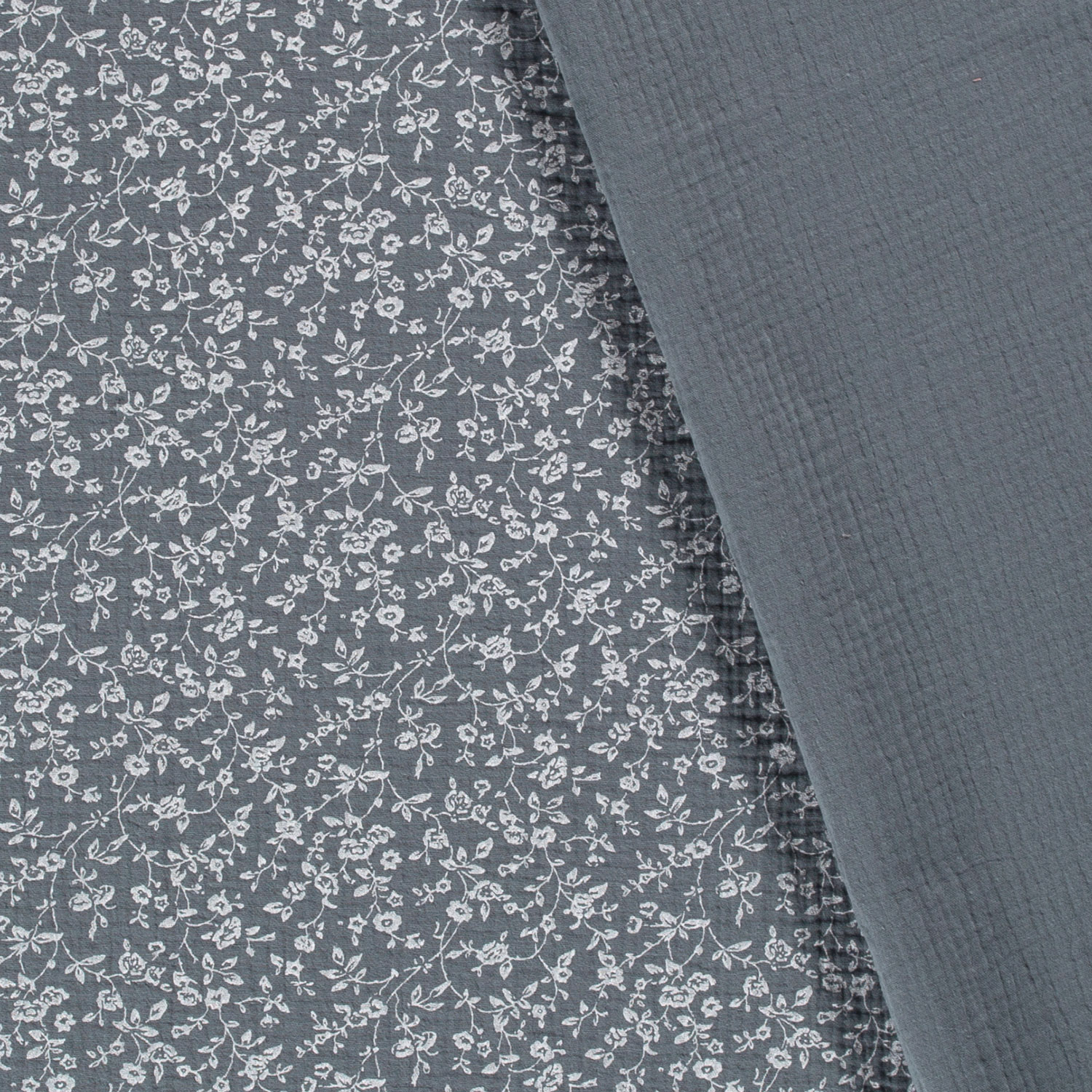 Musselin Stoff Bedruckt Blumen, stahlblau