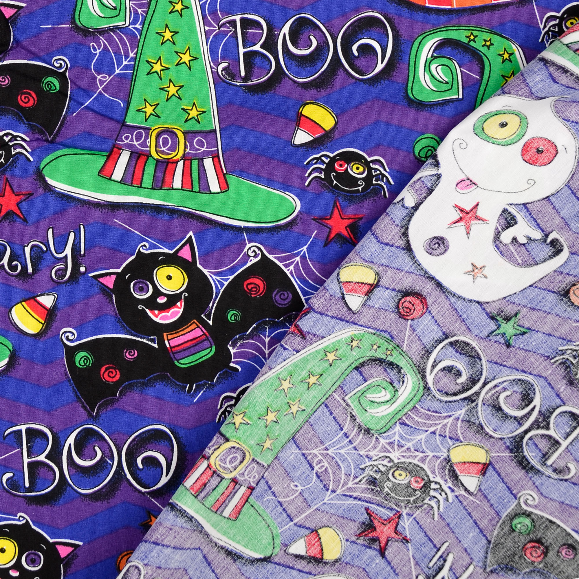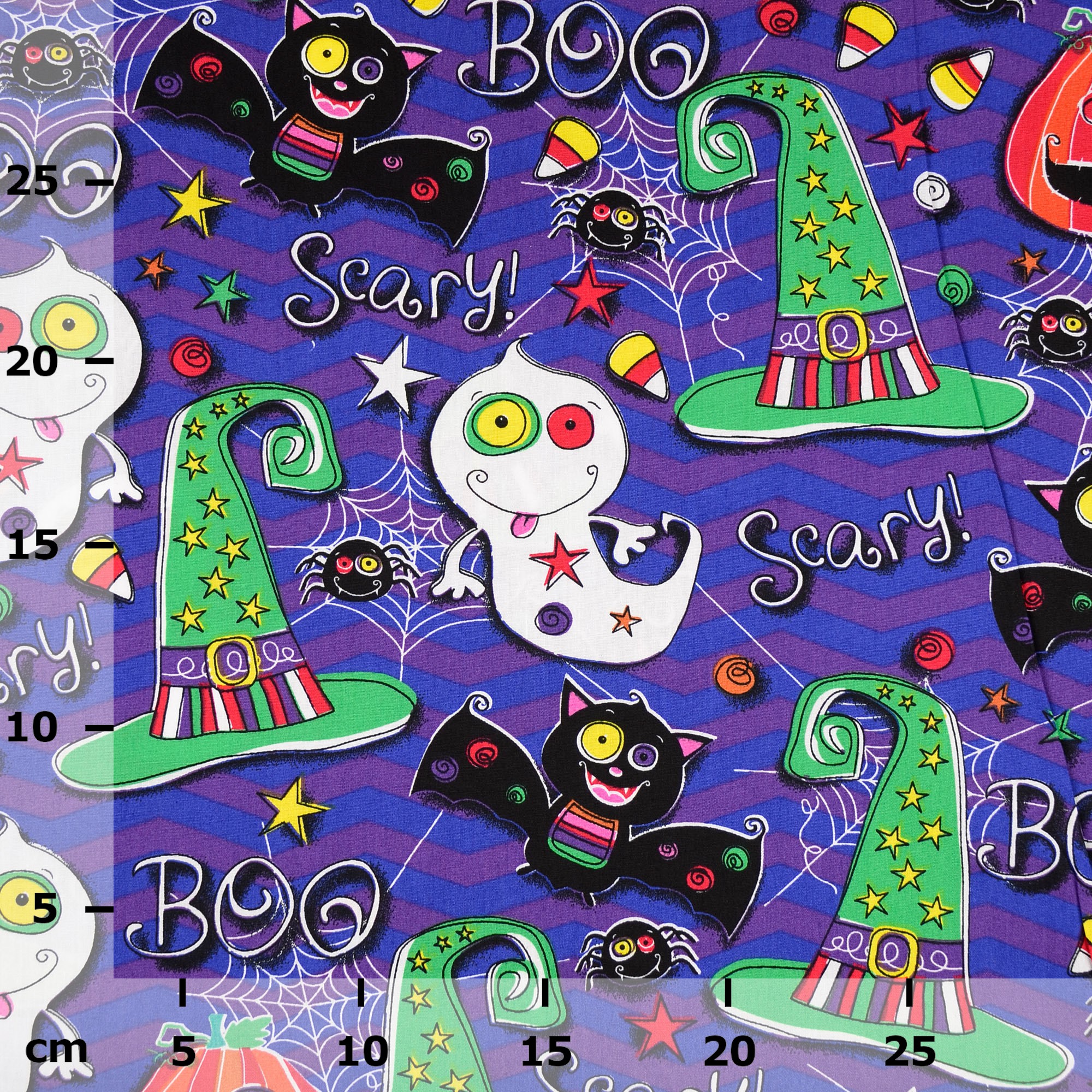Produktinformationen "Baumwollstoff Popeline Halloweenmotive, blau/lila"