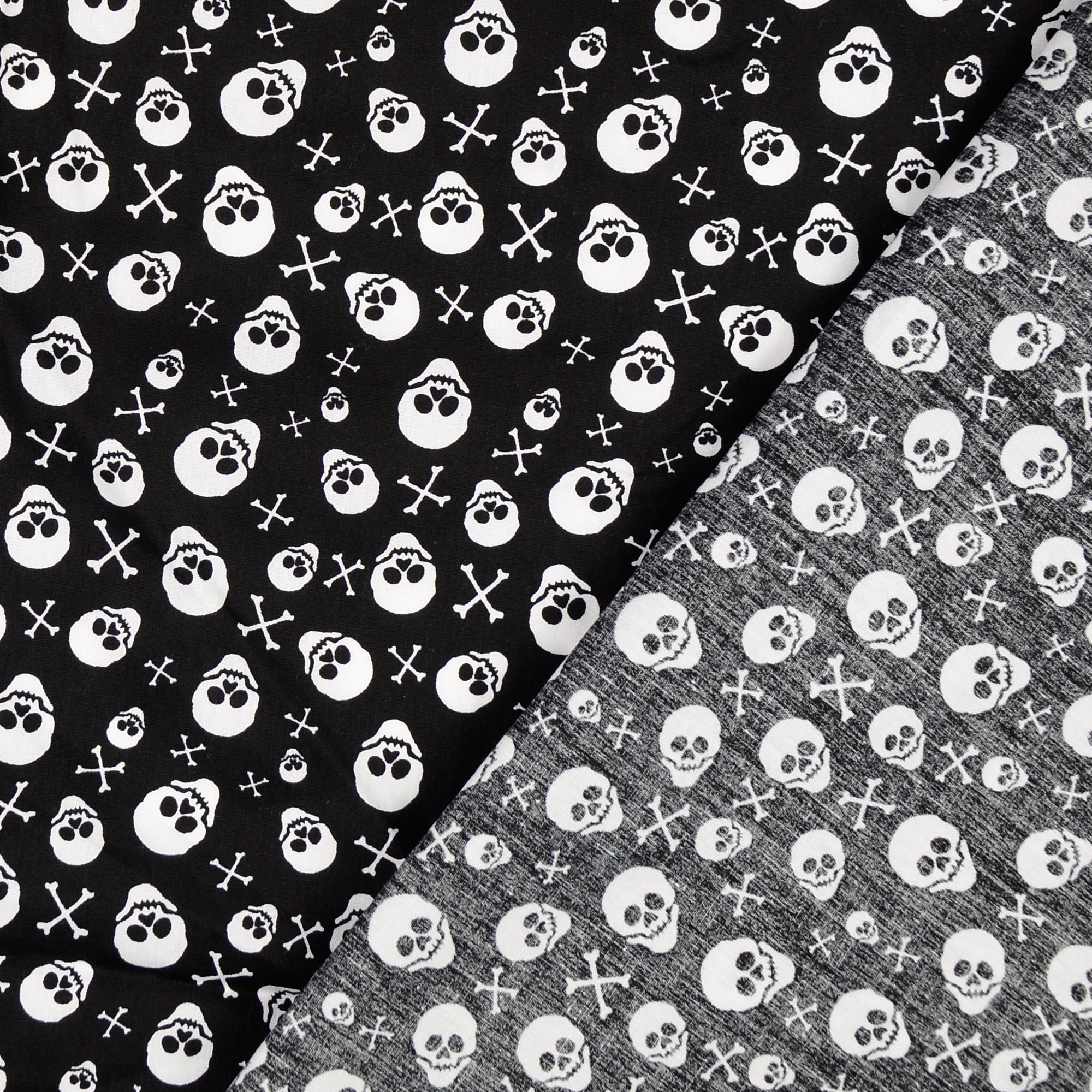 Baumwollstoff Popeline Totenköpfe, schwarz