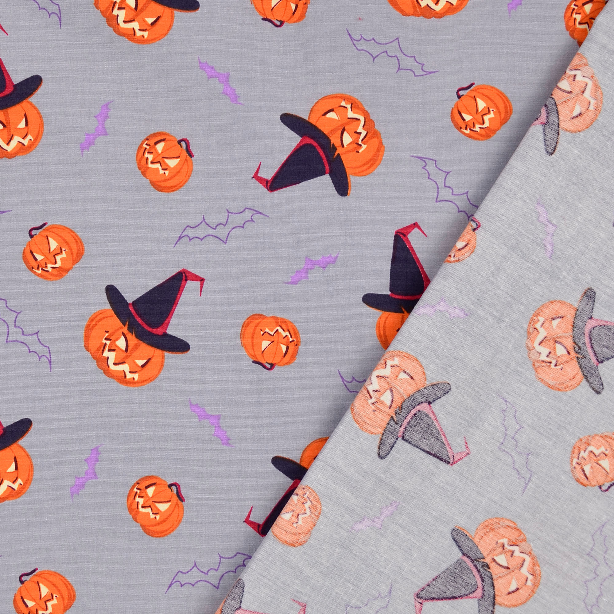 Baumwollstoff Popeline Kürbiskopf, grau
