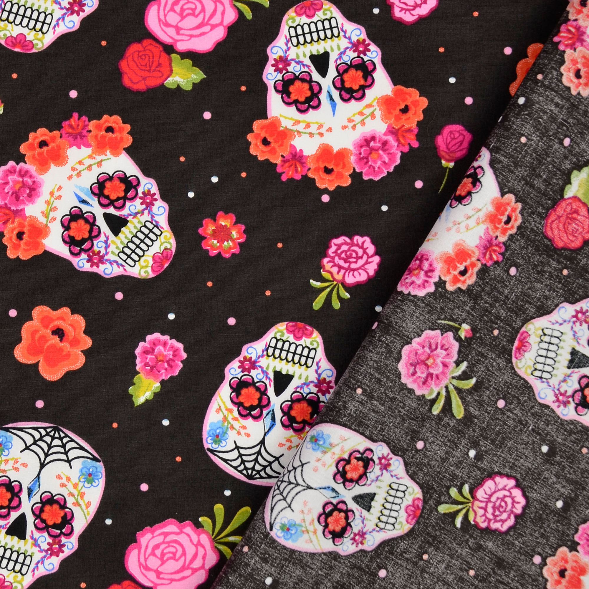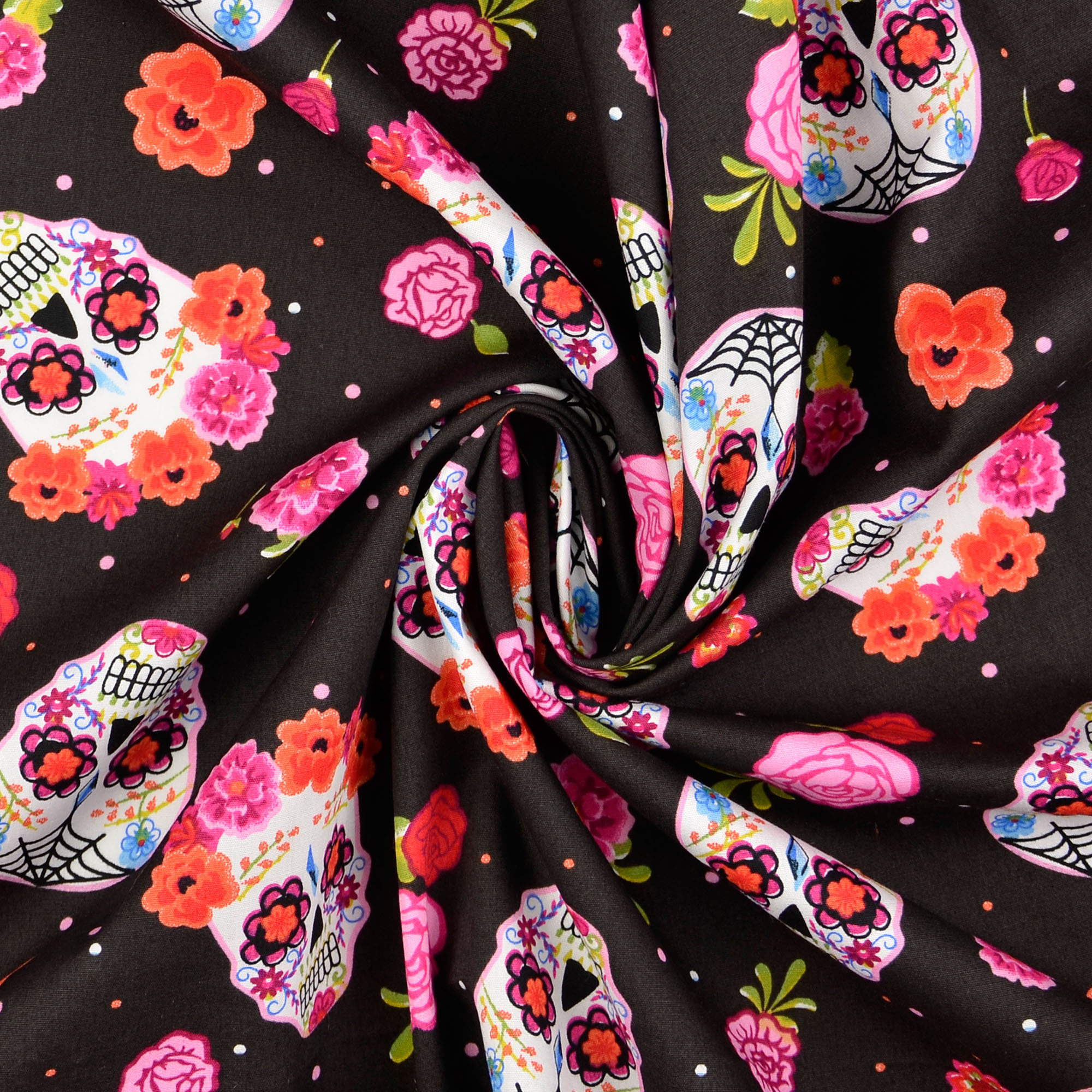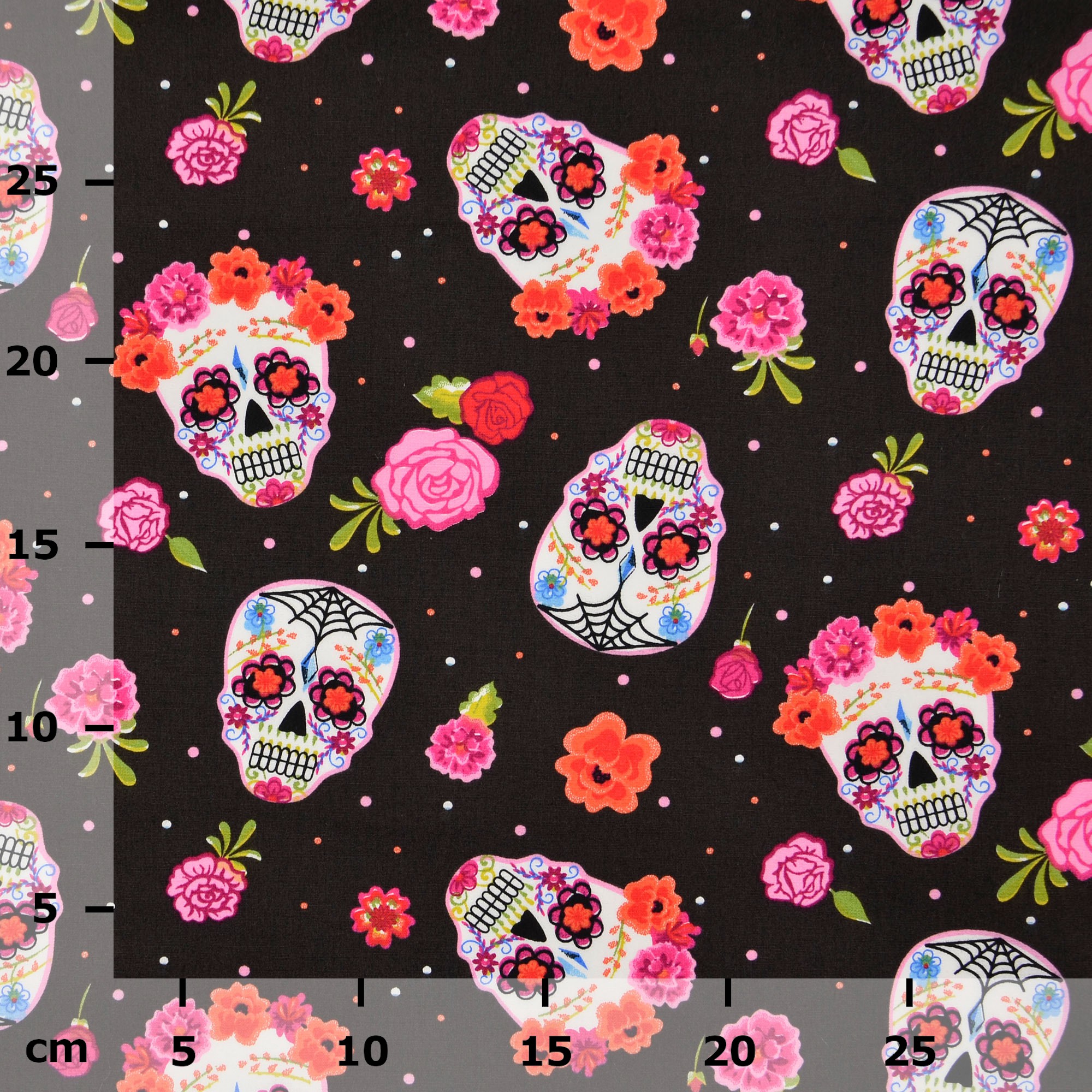 Produktinformationen "Baumwollstoff Popeline Flower Skull Mix, anthrazit"