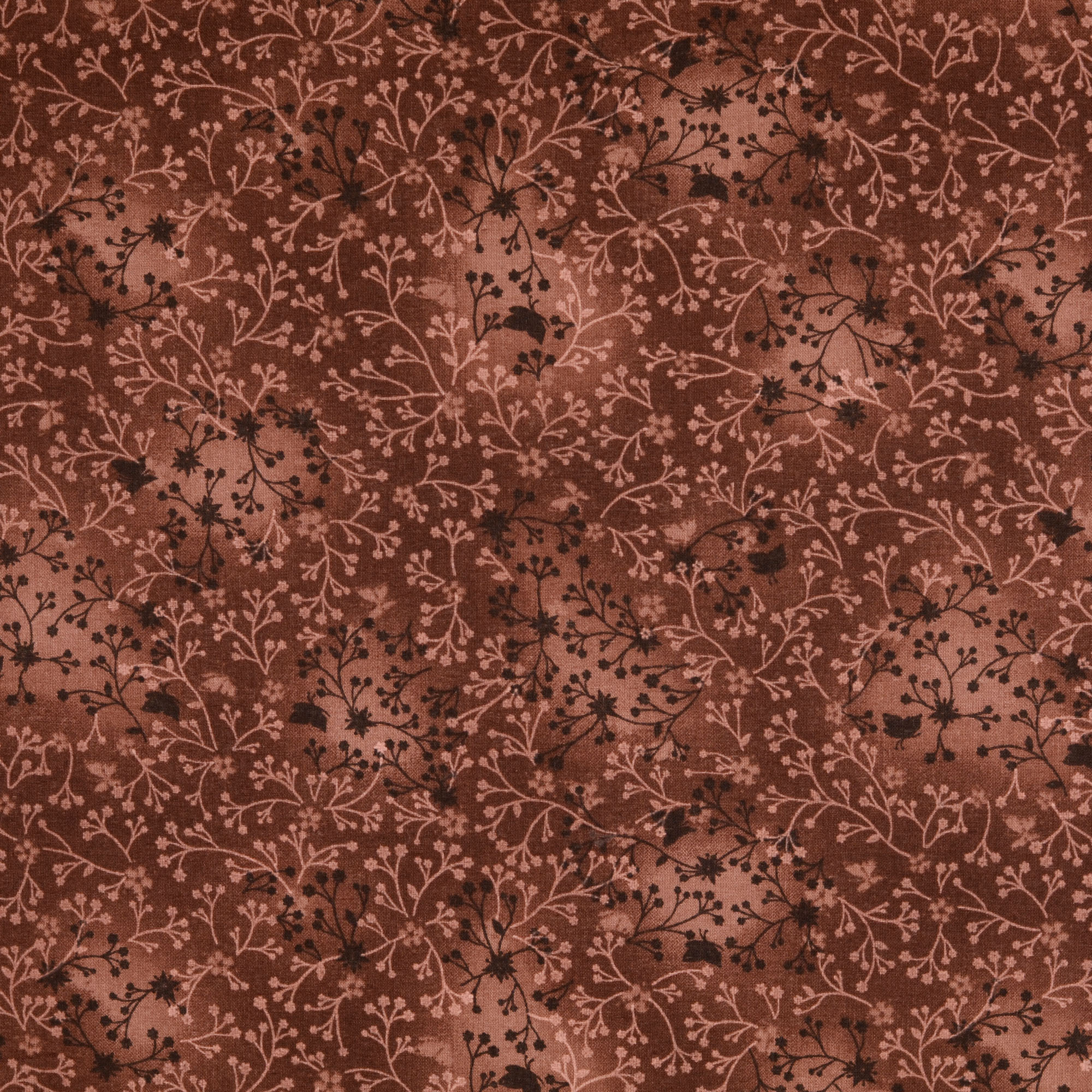 Baumwollstoff Popeline, Blumenranken, braun