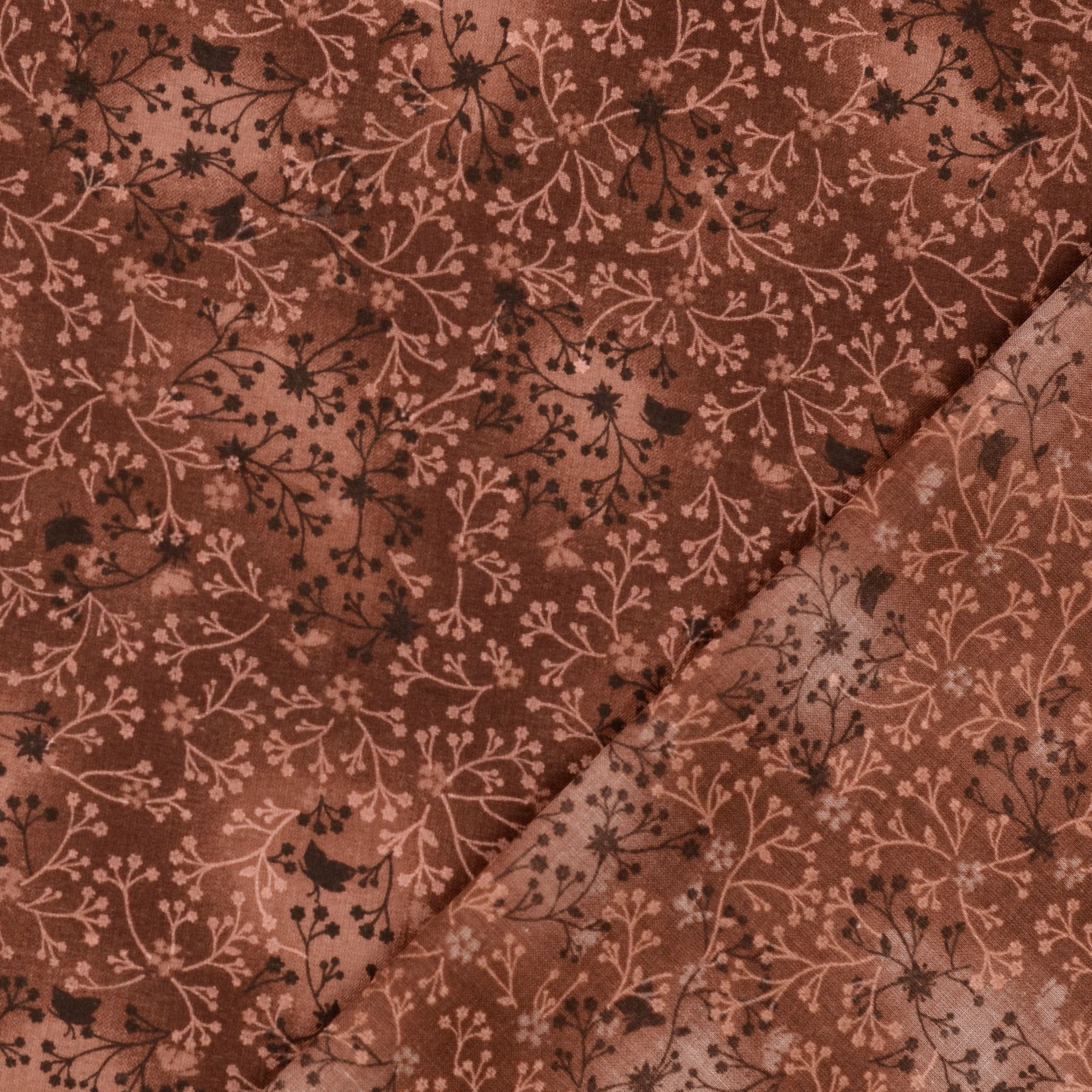 Produktinformationen "Baumwollstoff Popeline, Blumenranken, braun"