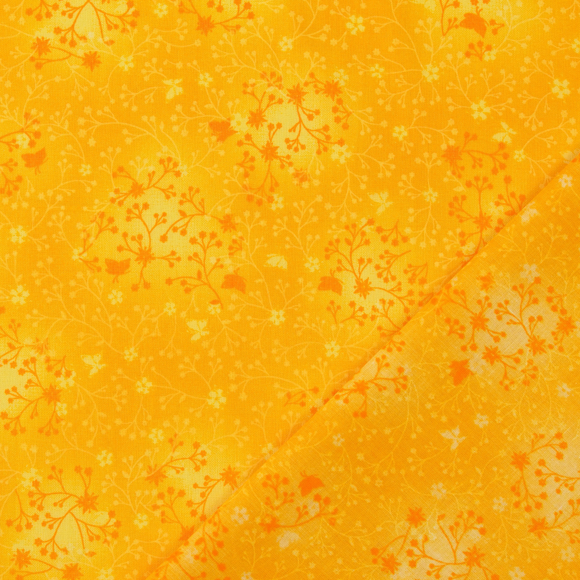 Baumwollstoff Popeline, Blumenranken, sonnengelb