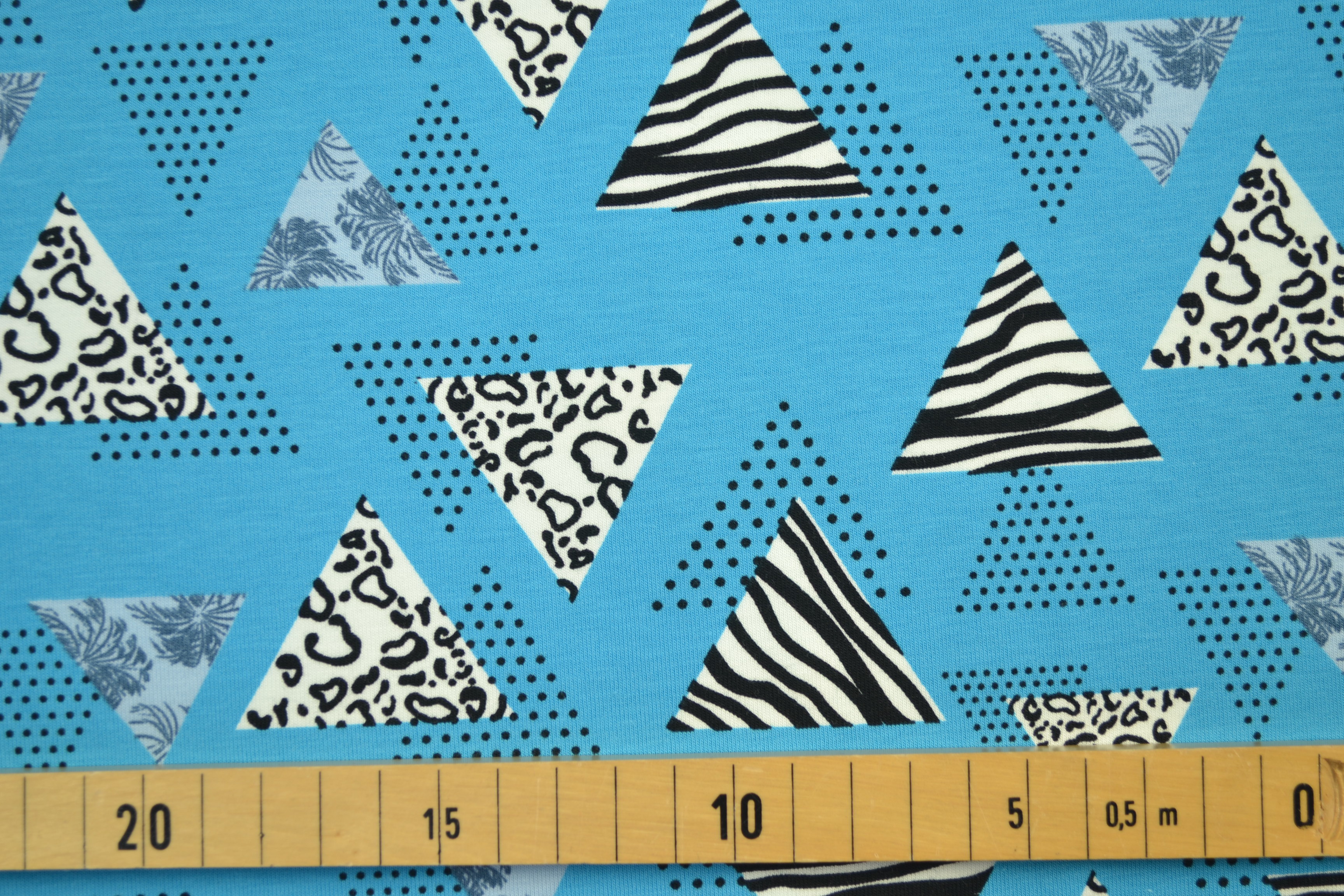 Produktinformationen "Baumwolljersey bedruckt Dreiecke, blau"