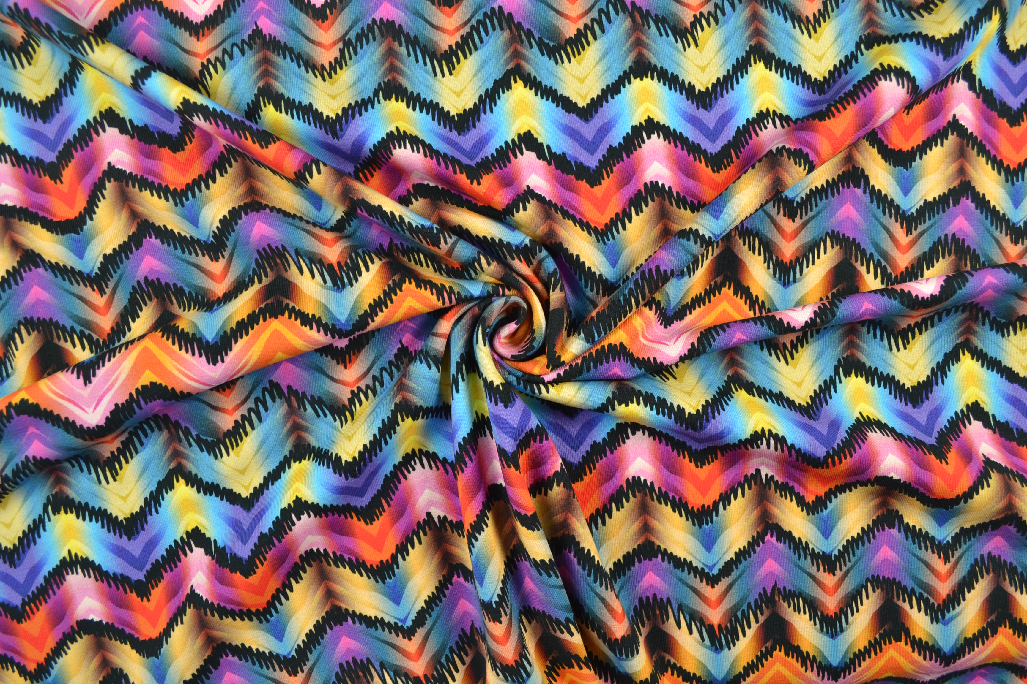 Produktinformationen "Baumwolljersey Digitaldruck Zick-Zack-Streifen, bunt"