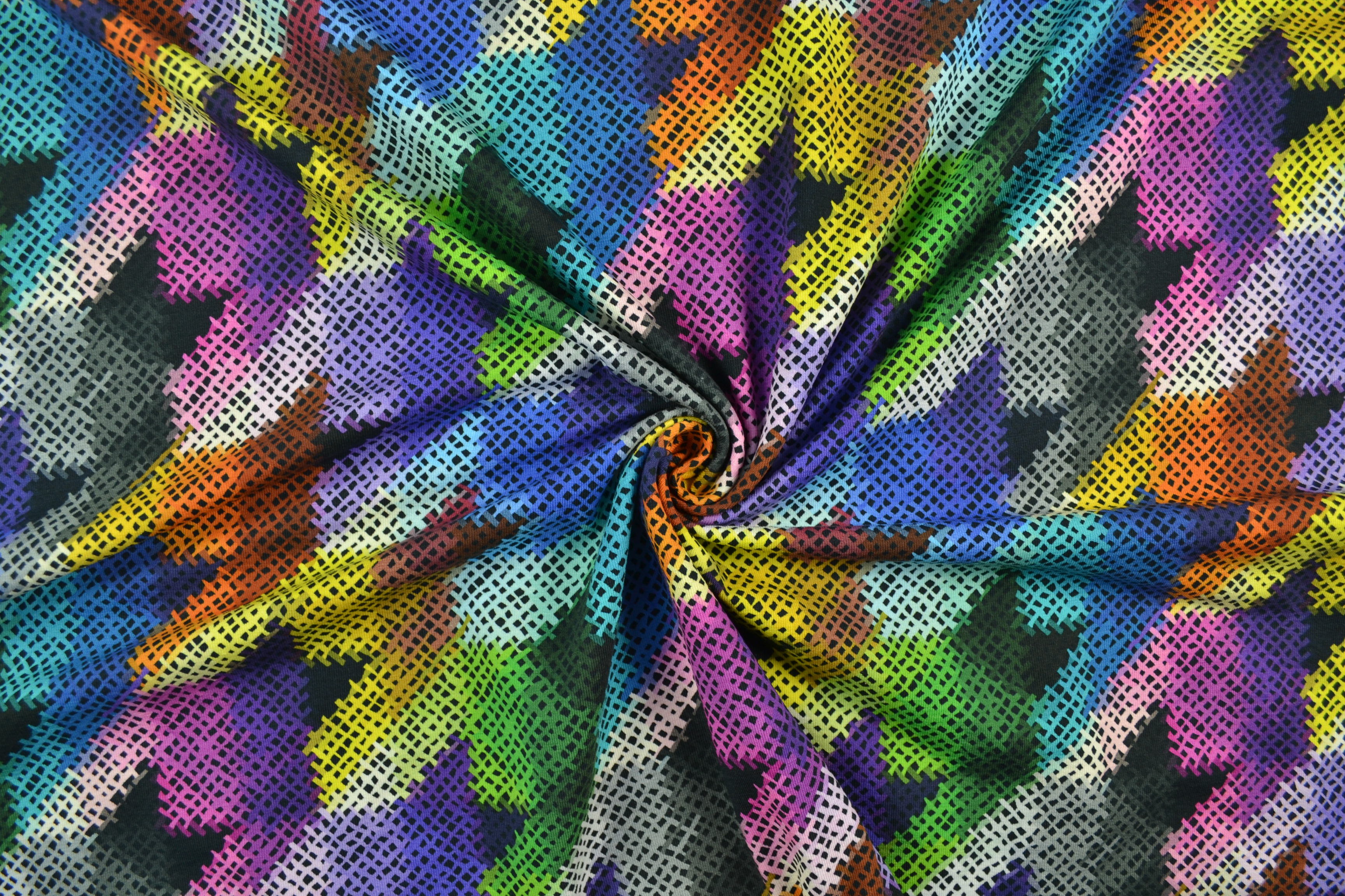 Baumwolljersey Digitaldruck Hahnentritt groß, bunt