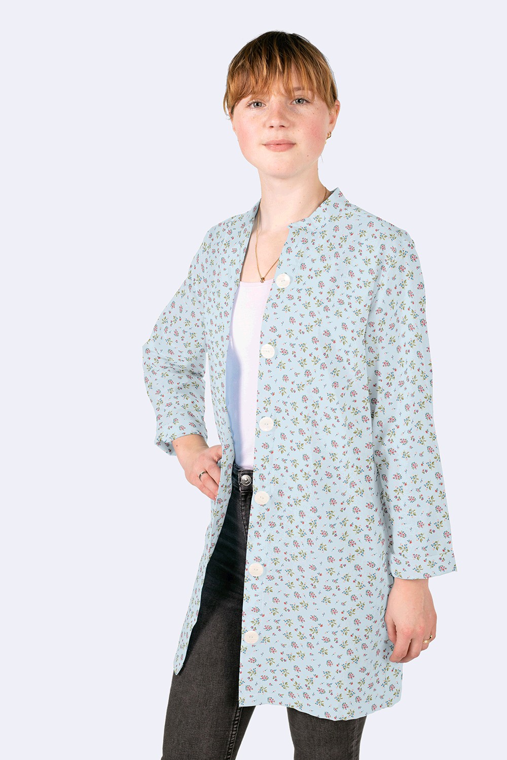 Produktinformationen "Baumwollstoff Popeline Blumen, babyblau"