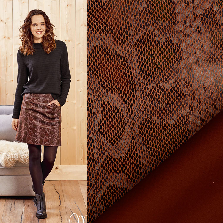 Produktinformationen "Stretch Lederimitat Milliblus, Schlange braun"