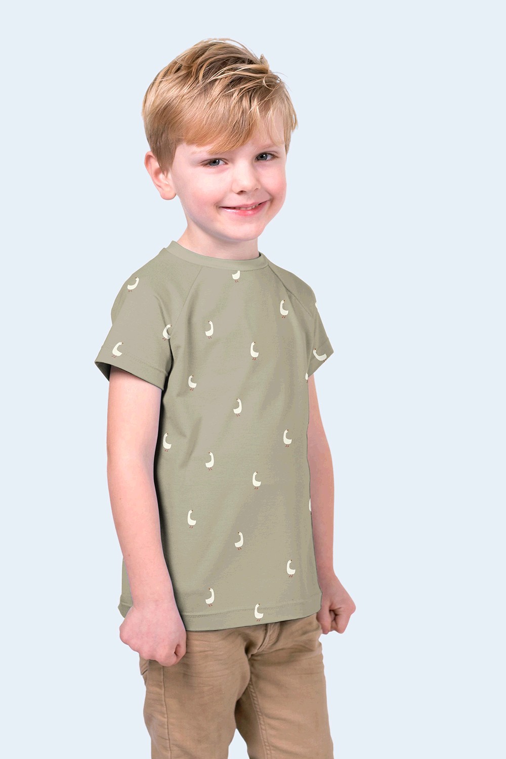 Produktinformationen "Baumwolljersey bedruckt, Schwäne oliv/grün"