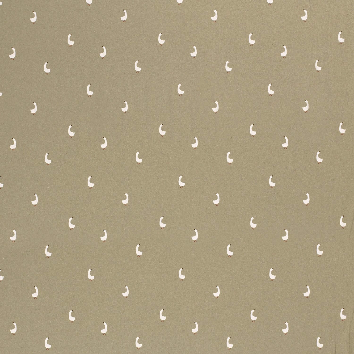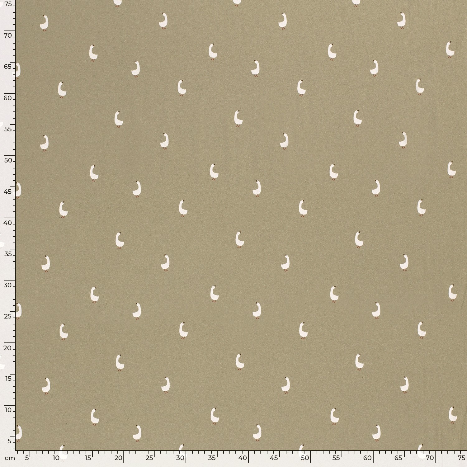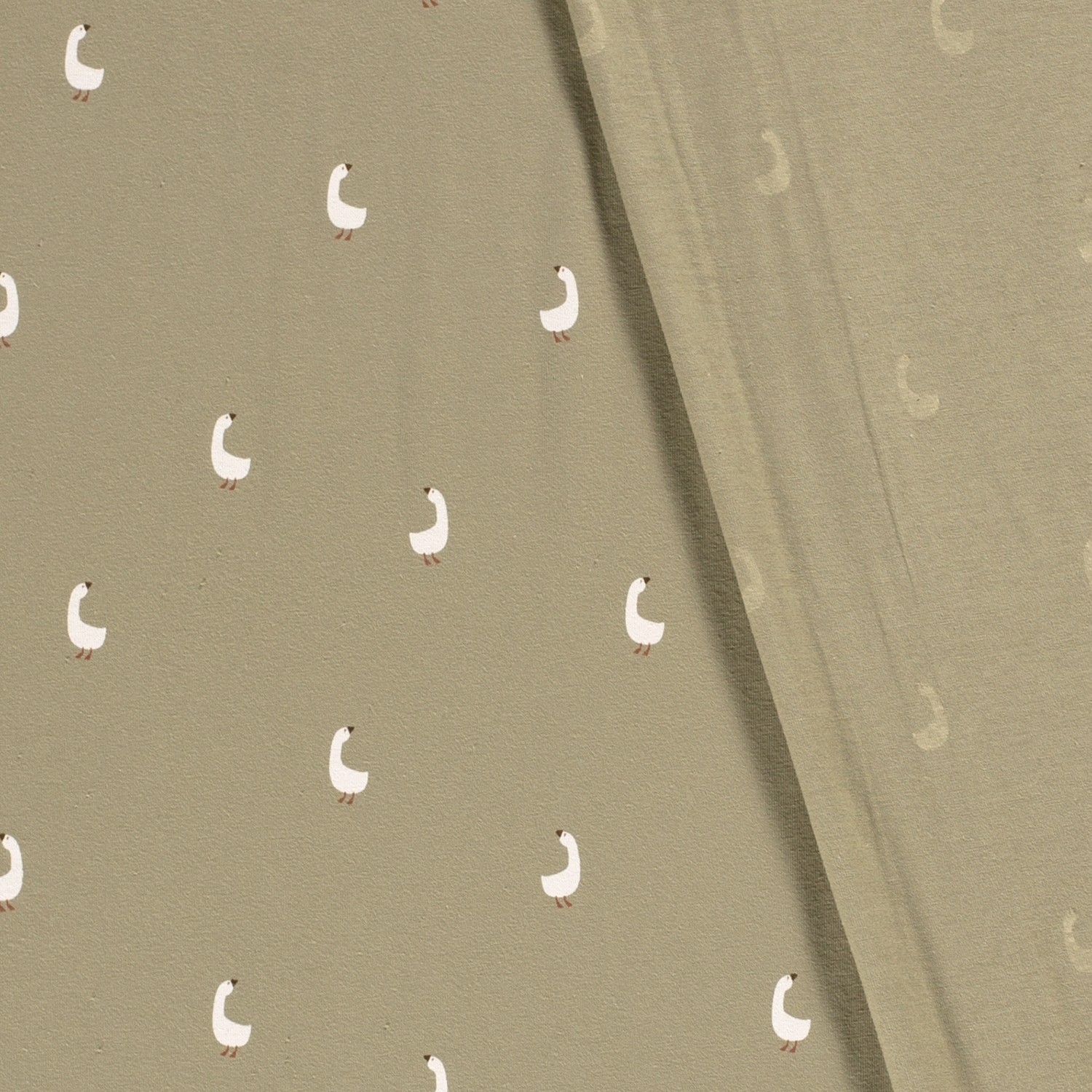Baumwolljersey bedruckt, Schwäne oliv/grün