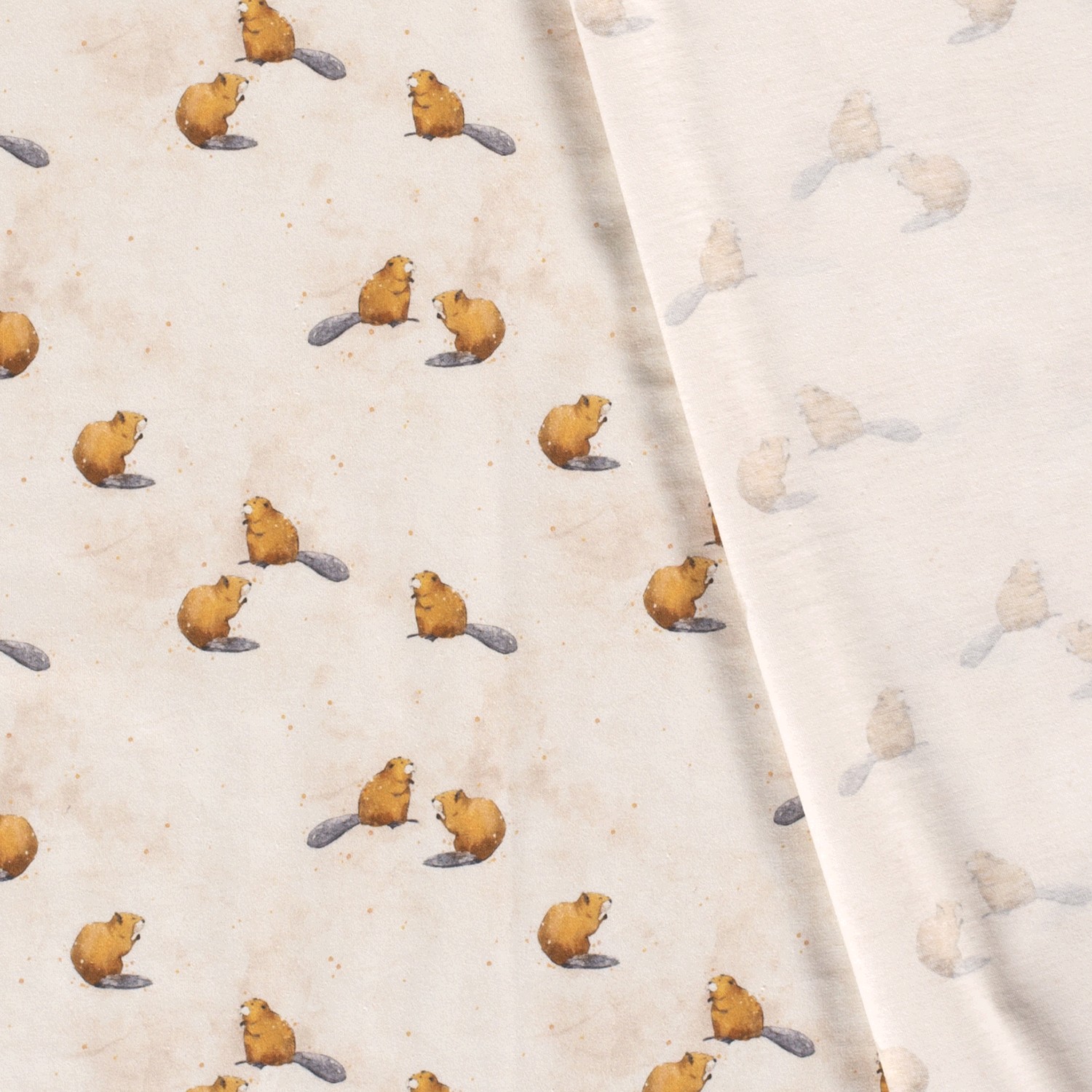 Produktinformationen "Baumwolljersey bedruckt, Biber beige"