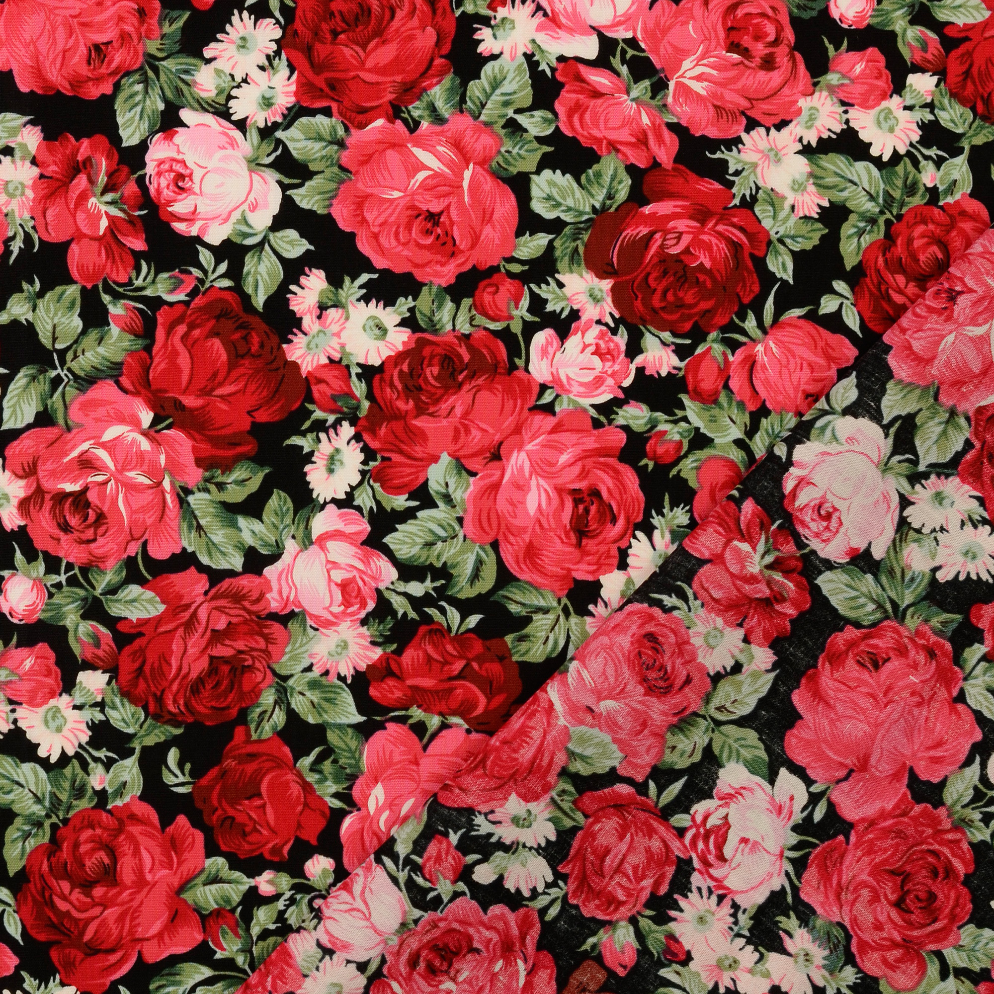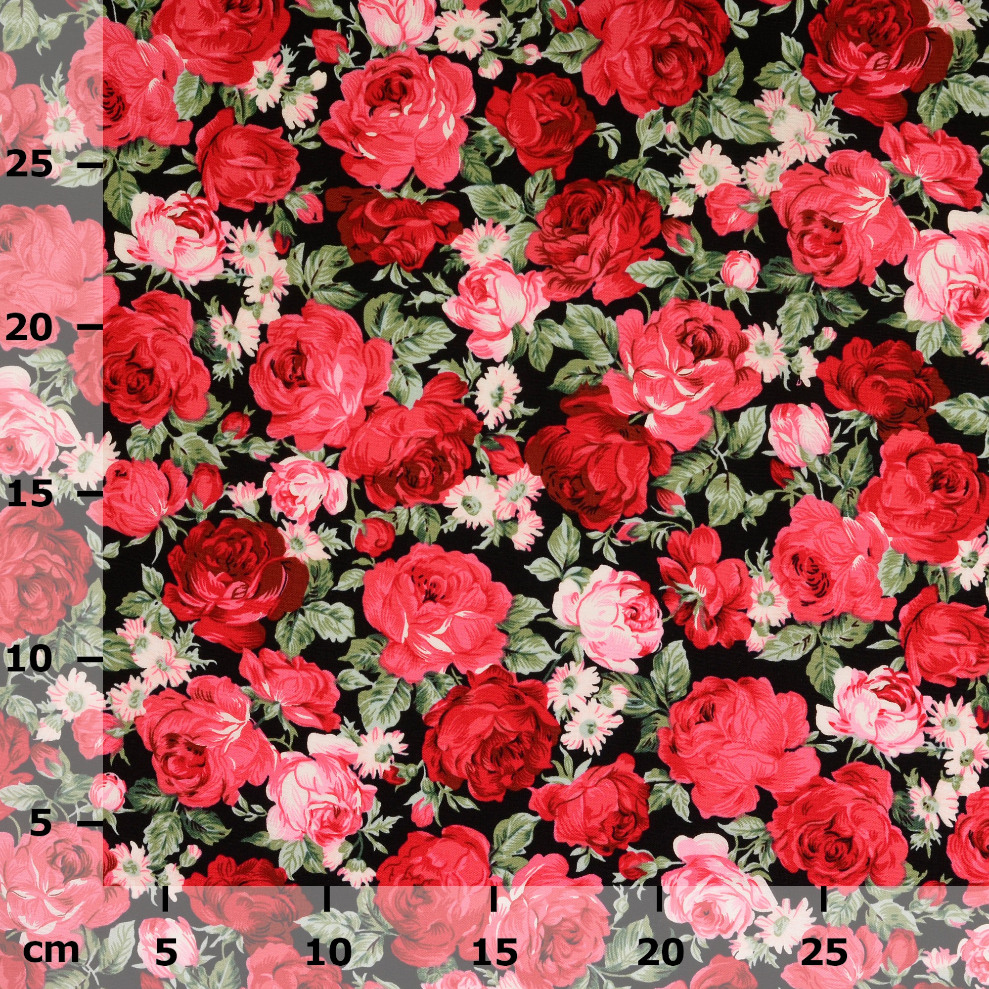 Produktinformationen "Baumwollstoff Popeline Rosenmeer, schwarz"
