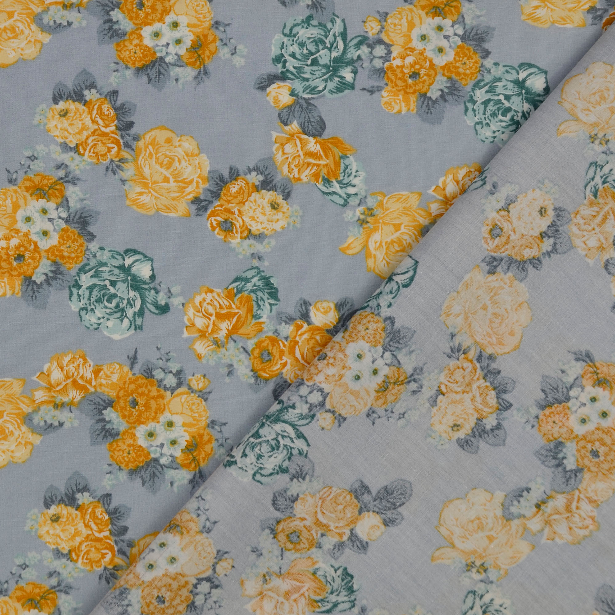 Baumwollstoff Popeline Rosenkette, grau