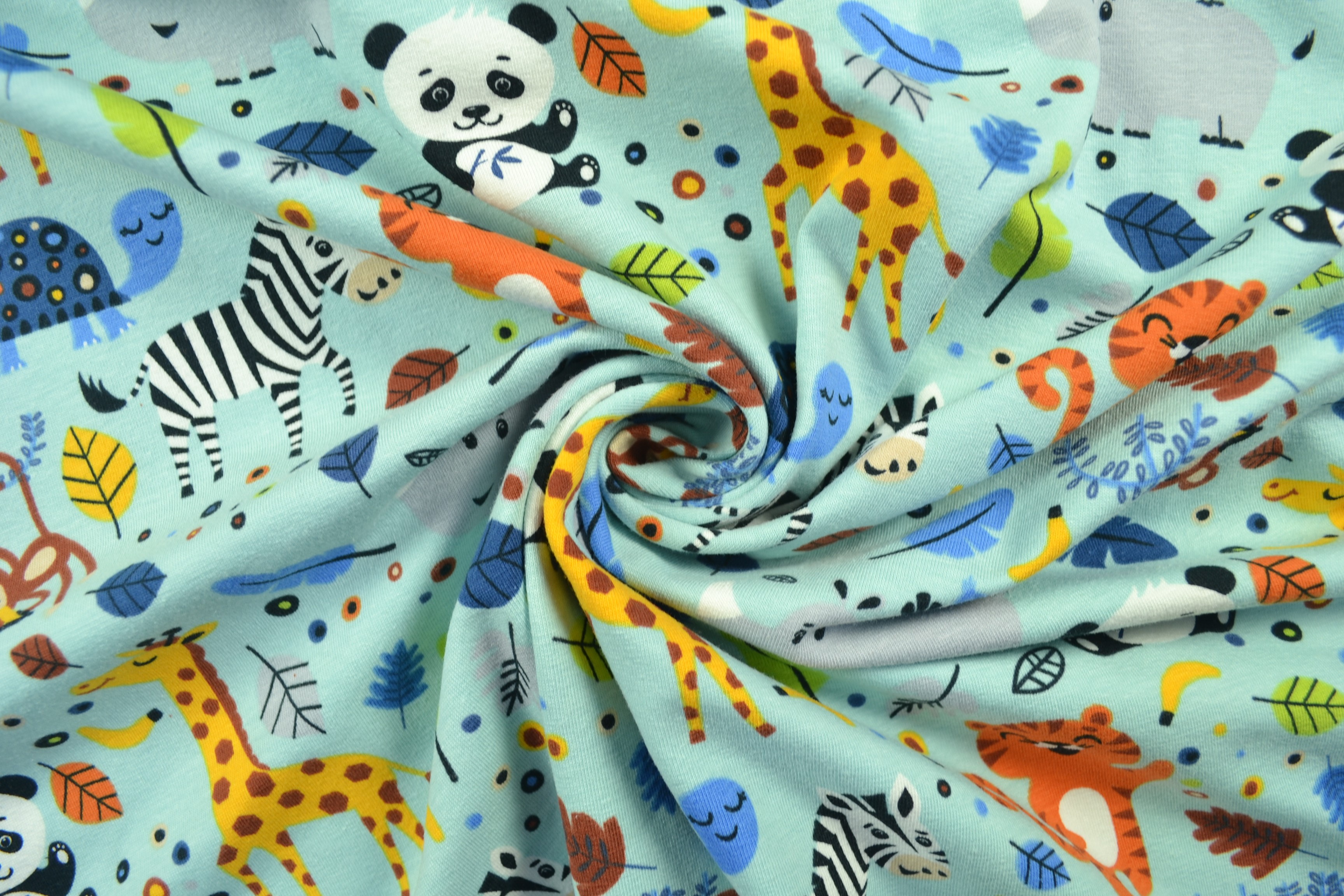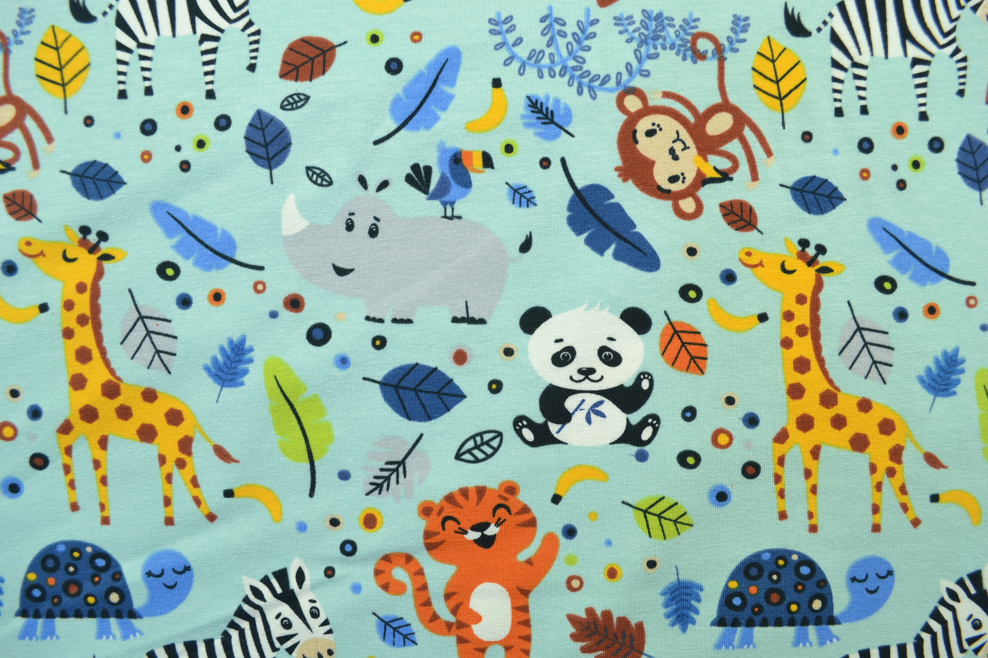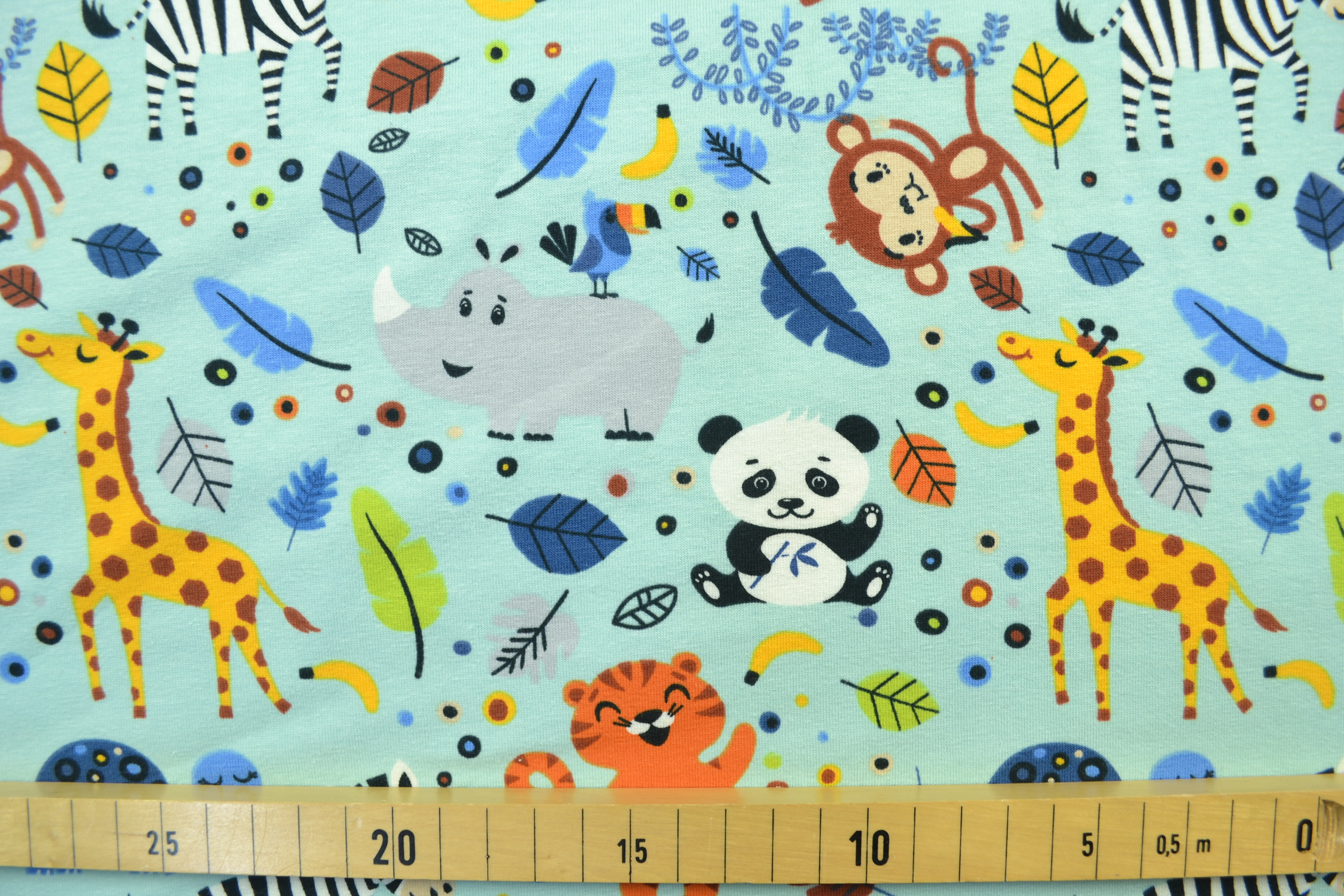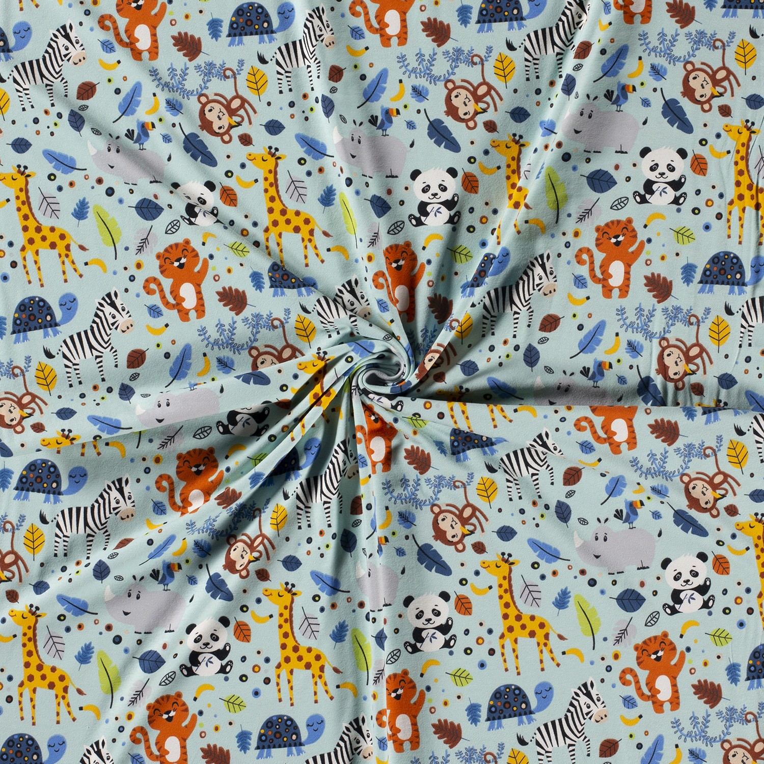 Produktinformationen "Baumwolljersey Dschungel Party, blau"
