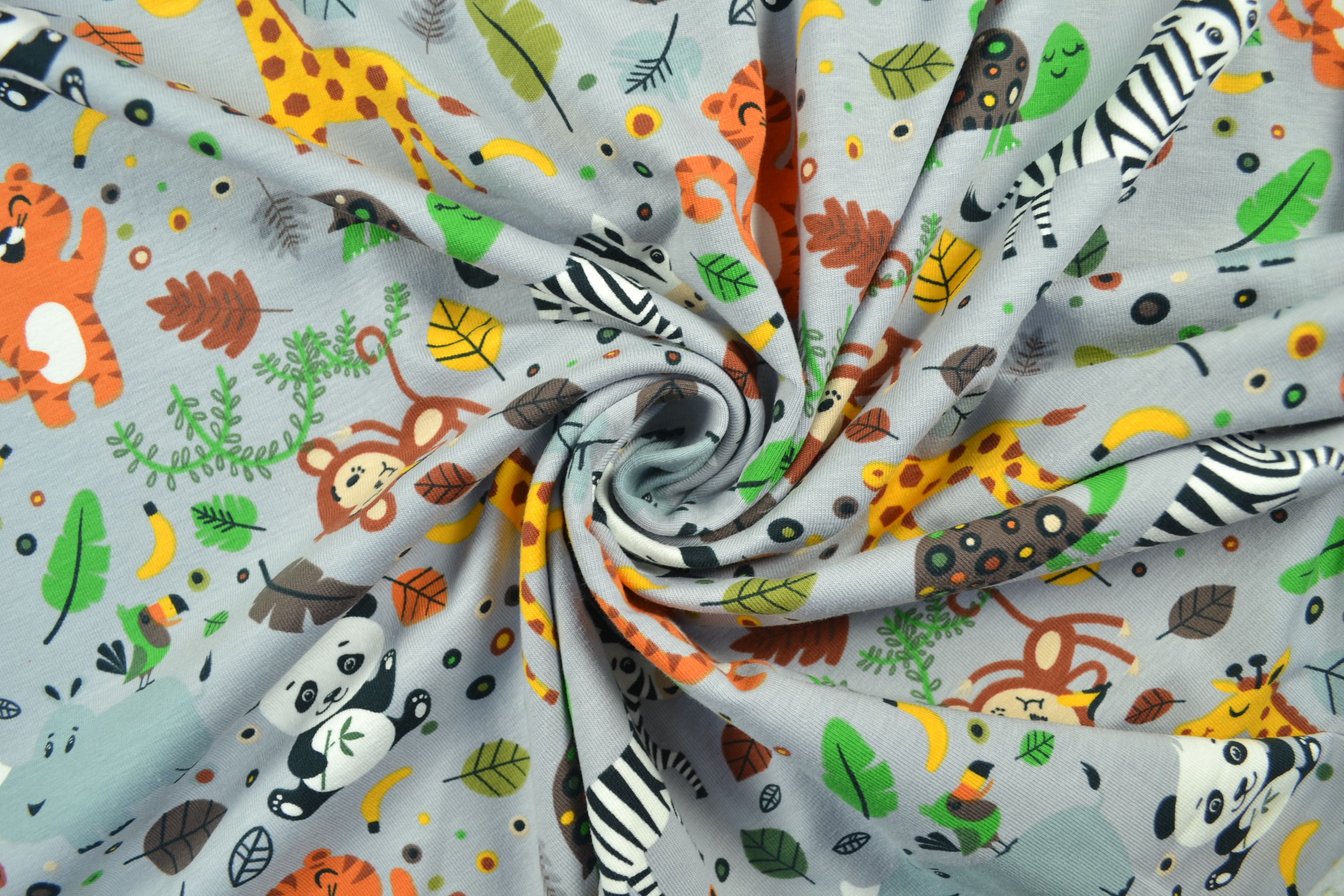 Produktinformationen "Baumwolljersey Dschungel Party, grau"