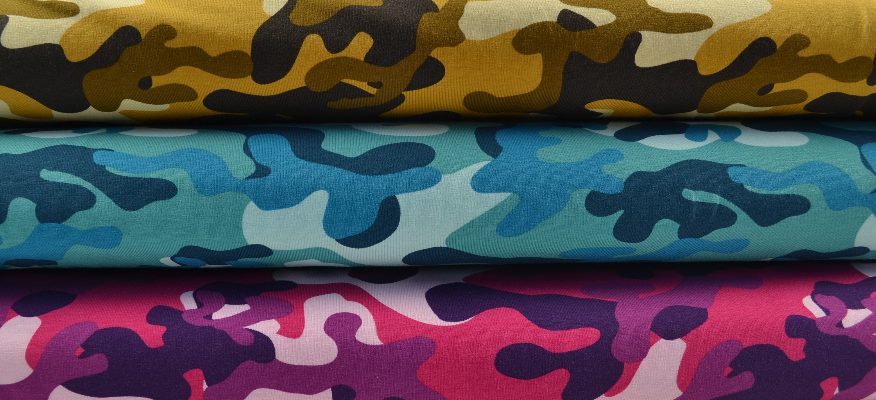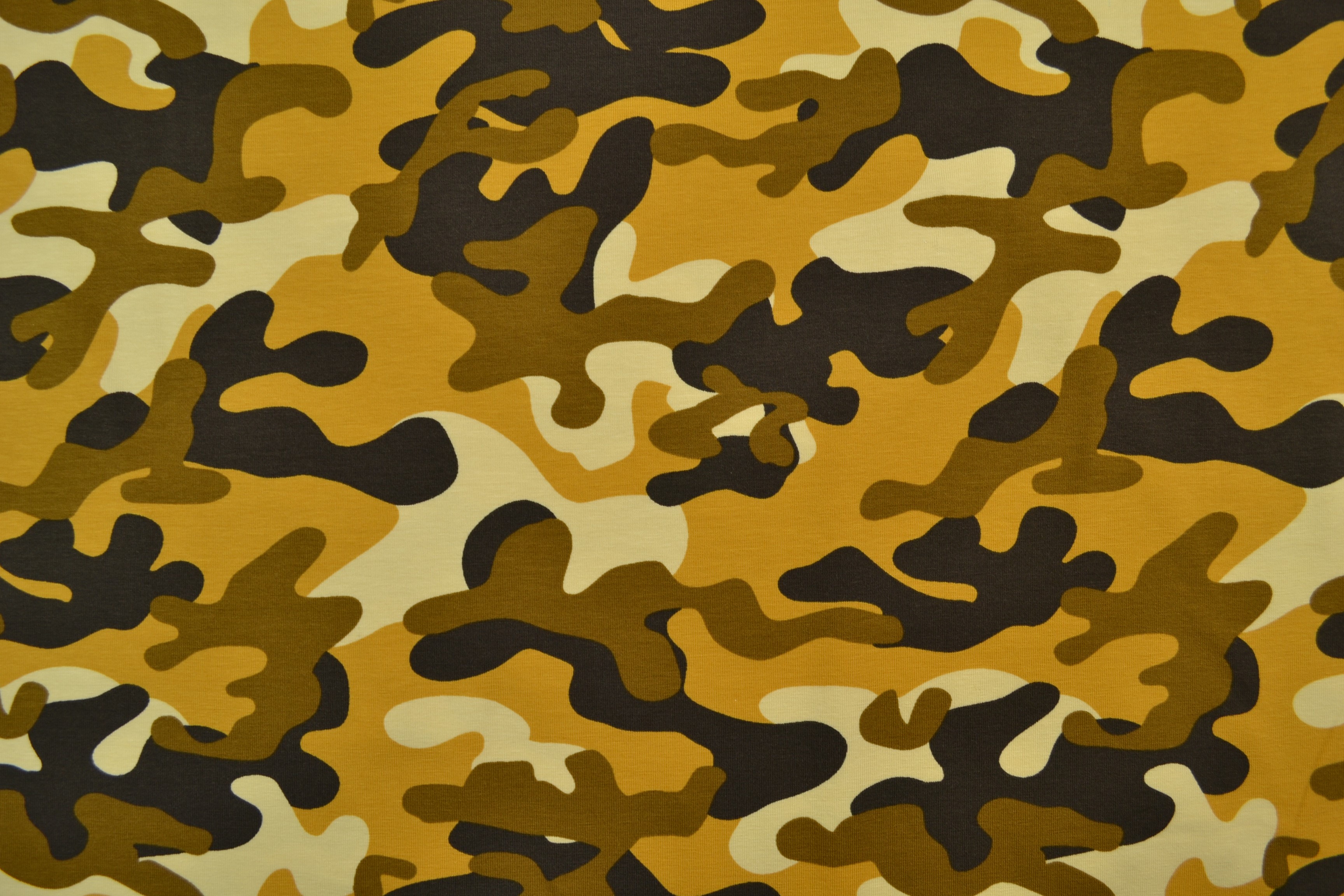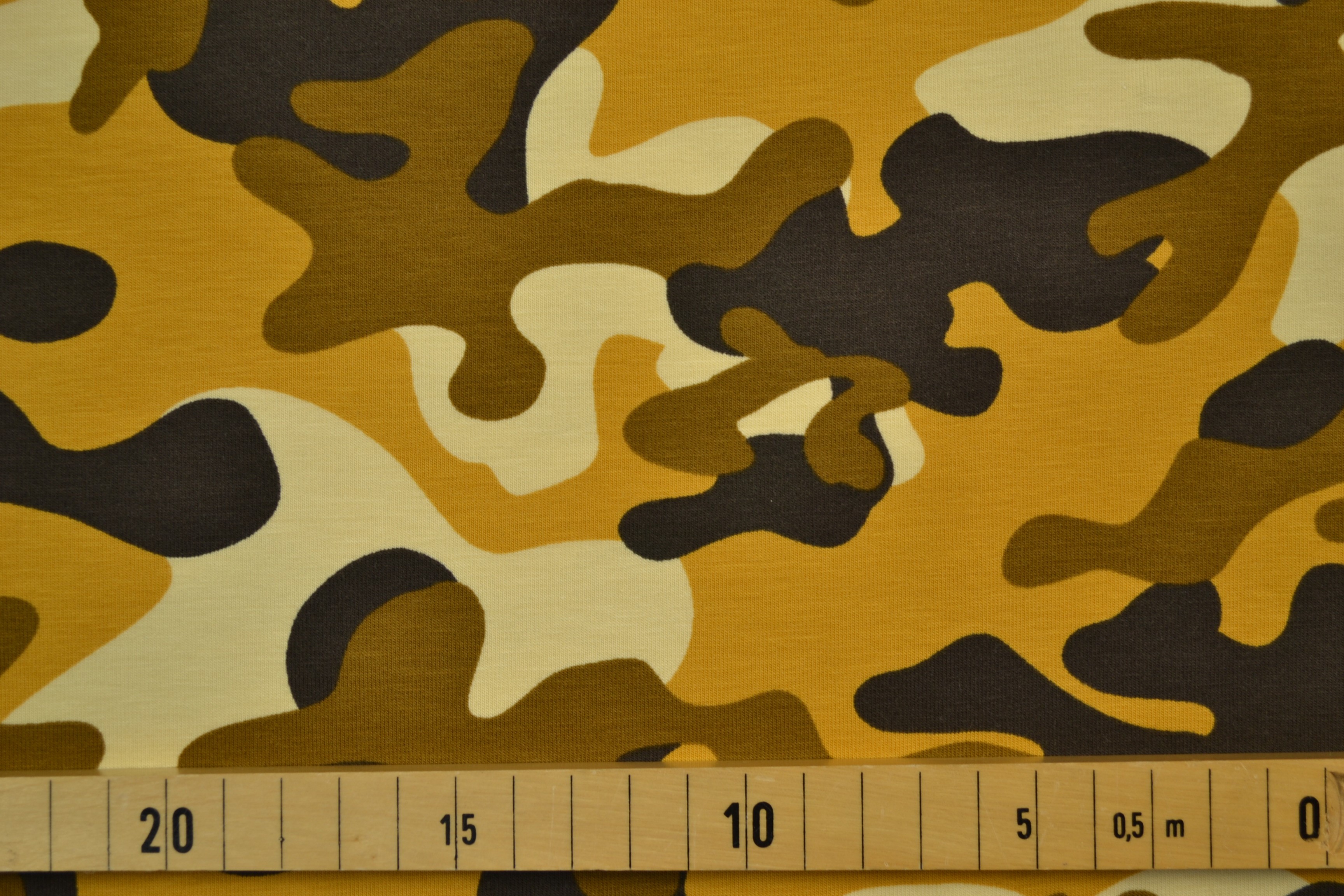 Produktinformationen "Baumwolljersey gemustert, Camouflage, senfgelb"