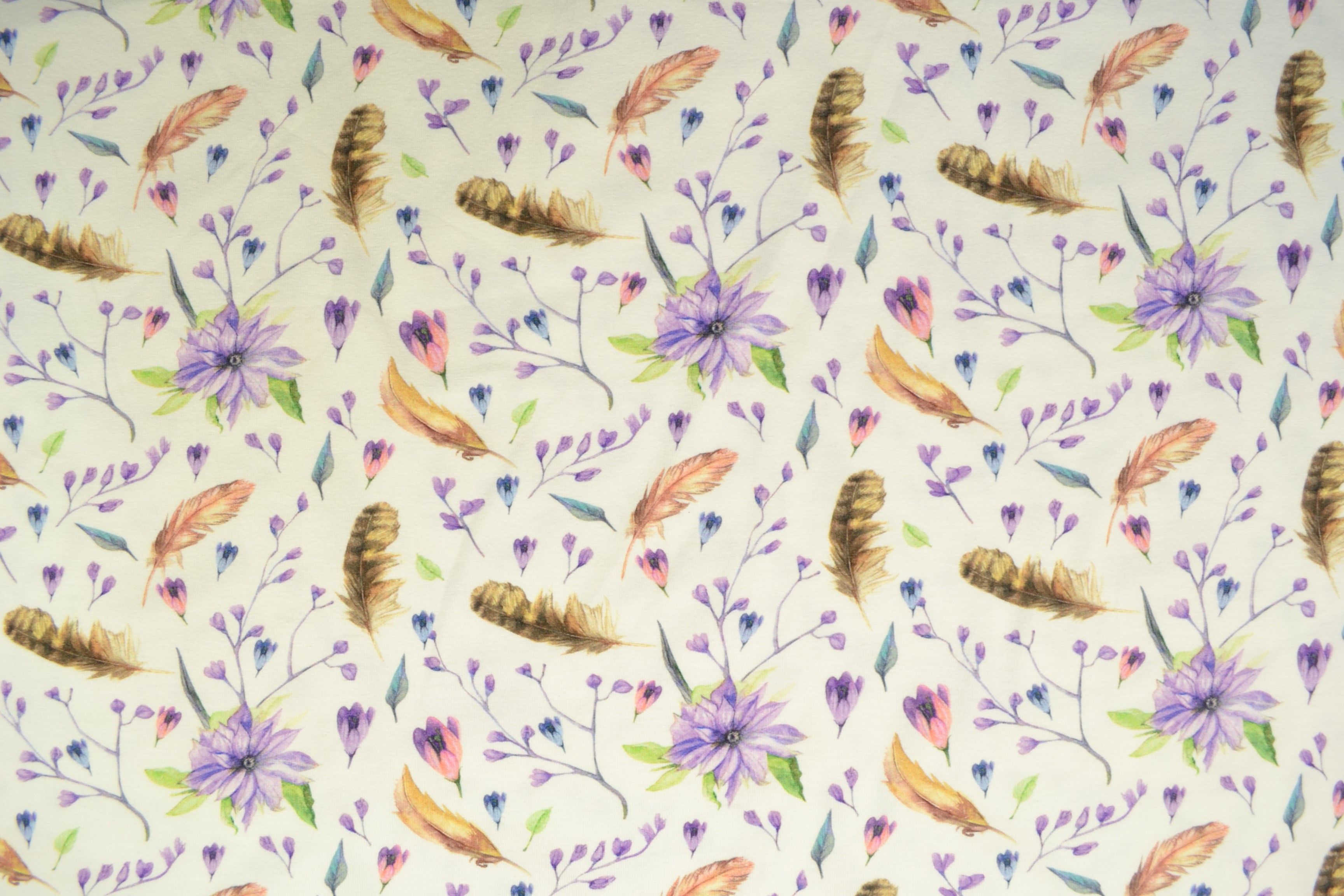 Produktinformationen "Baumwolljersey bedruckt Feder, natur"