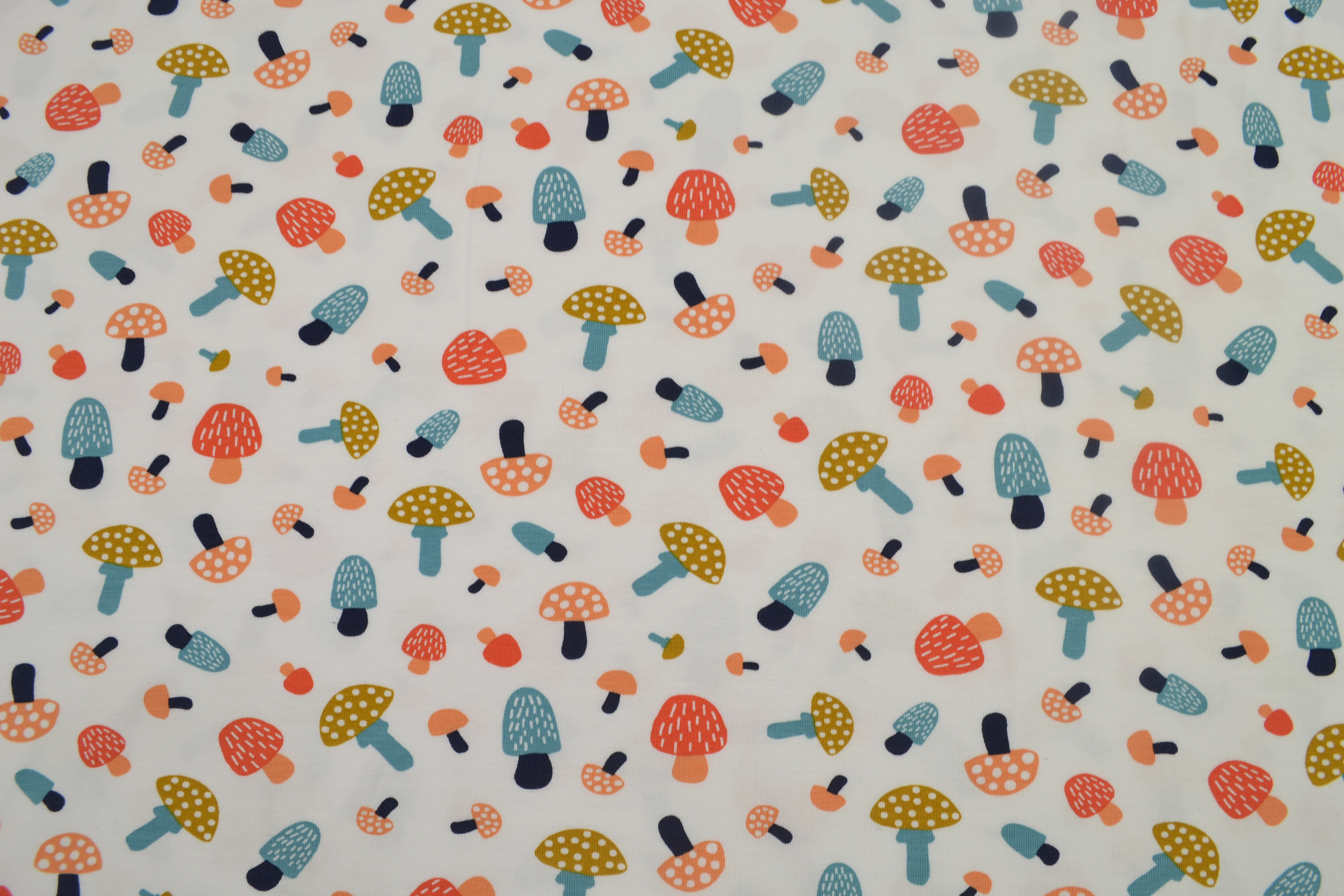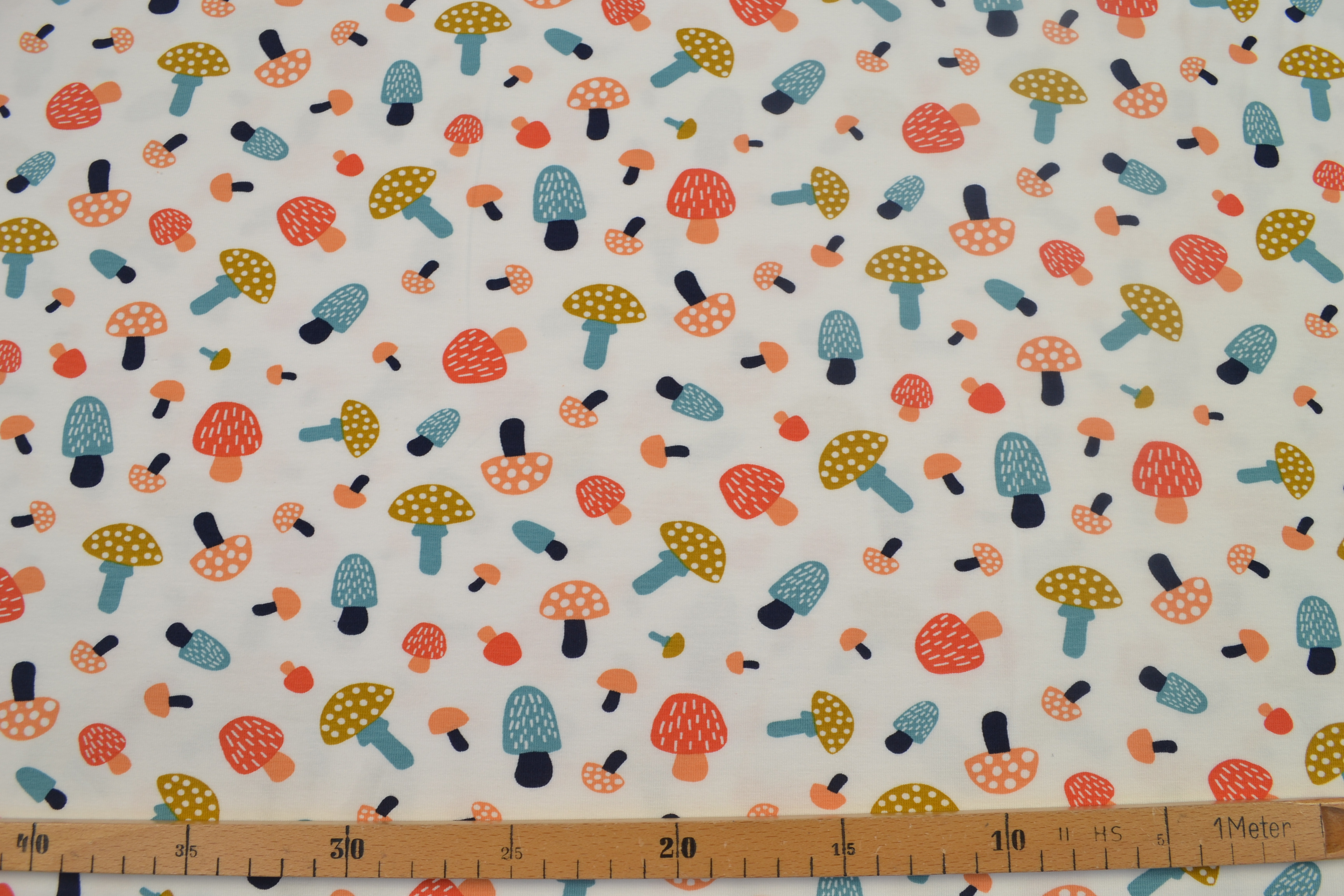 Produktinformationen "Baumwolljersey Bio Pilze, weiß"